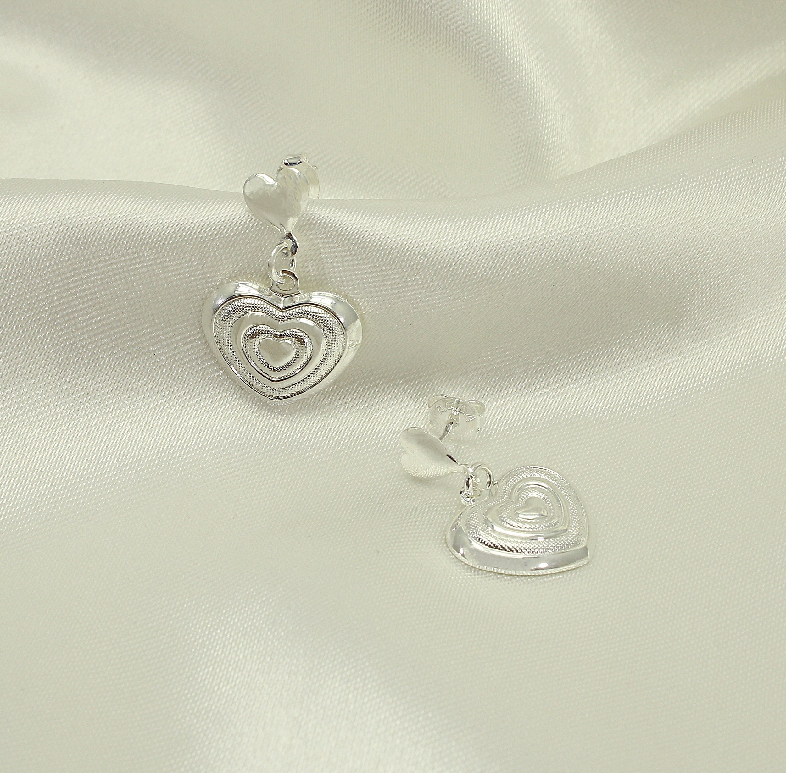 Brinco de Coração Texturizado Banhado com 30 Milésimos de Teor de Prata 925 e Finalizado com Verniz de Nanotecnologia