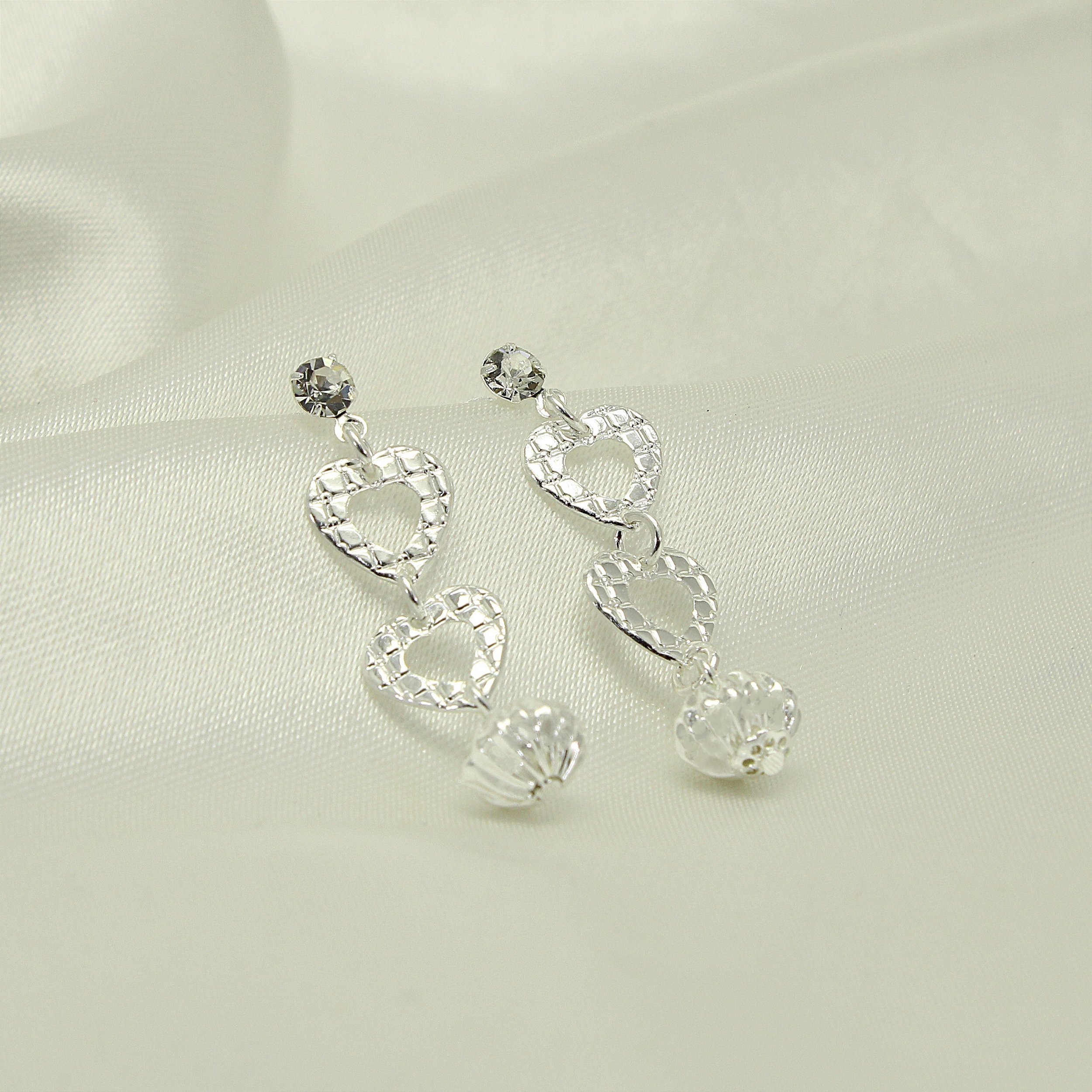 Brinco de Corações com Zircônia Cristal Banhado com 30 Milésimos de Teor de Prata 925 e Finalizado com Verniz de Nanotecnologia