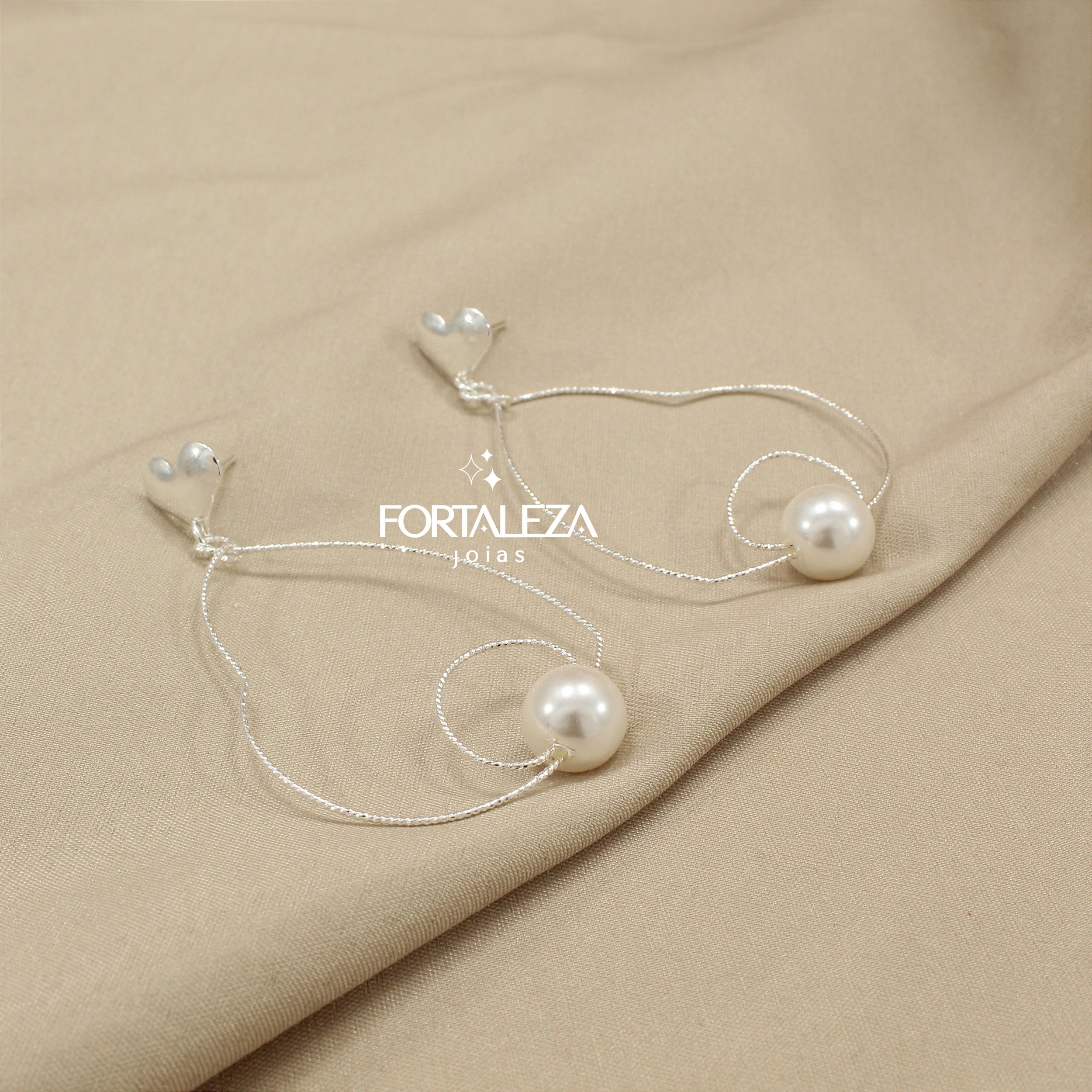 Brinco com Detalhe de Coração e Pérola Banhado com 30 Milésimos de Teor de Prata 925 e Finalizado com Verniz de Nanotecnologia