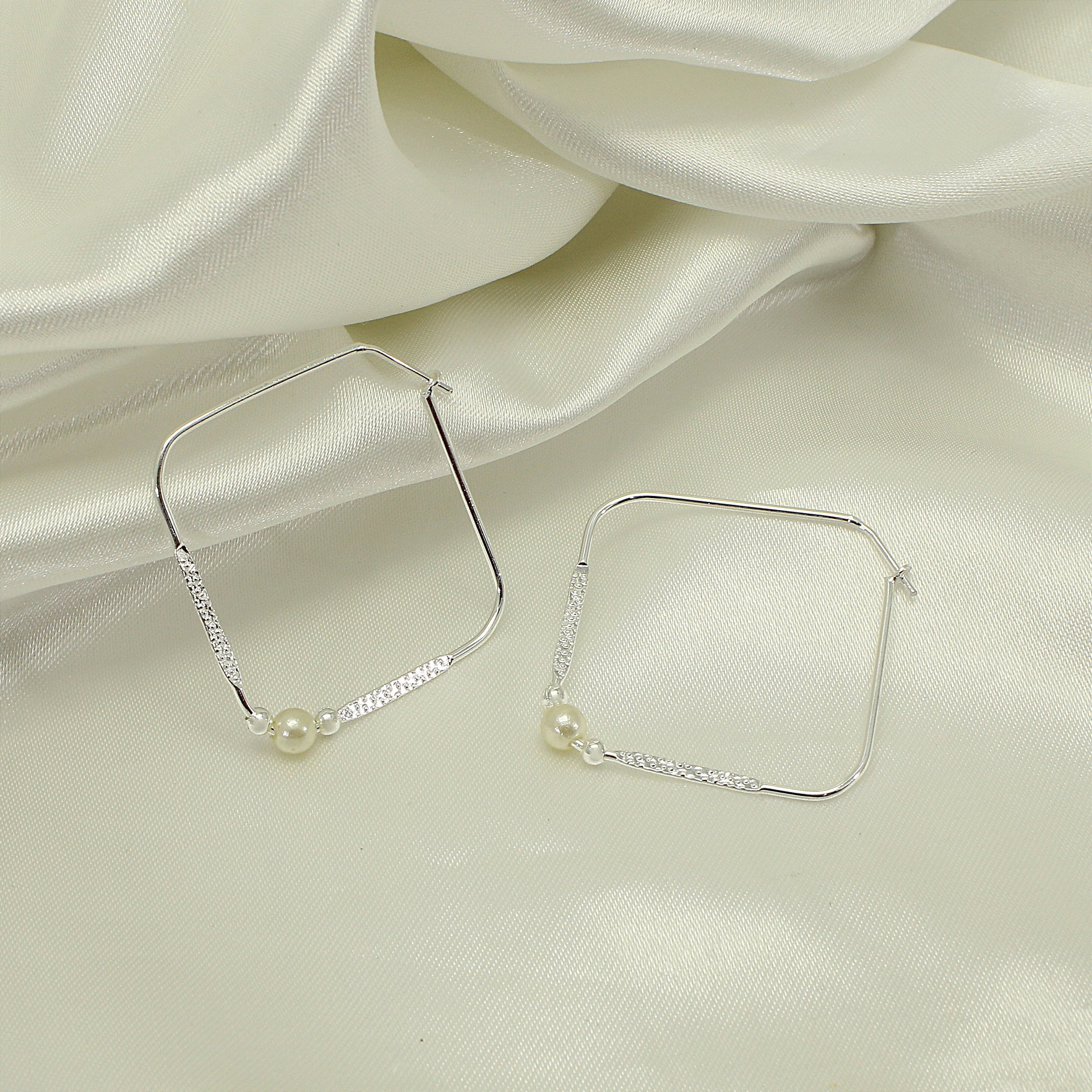 Brinco Argola Quadrado com Detalhe de Pérola Banhado com 30 Milésimos de Teor de Prata 925 e Finalizado com Verniz de Nanotecnologia