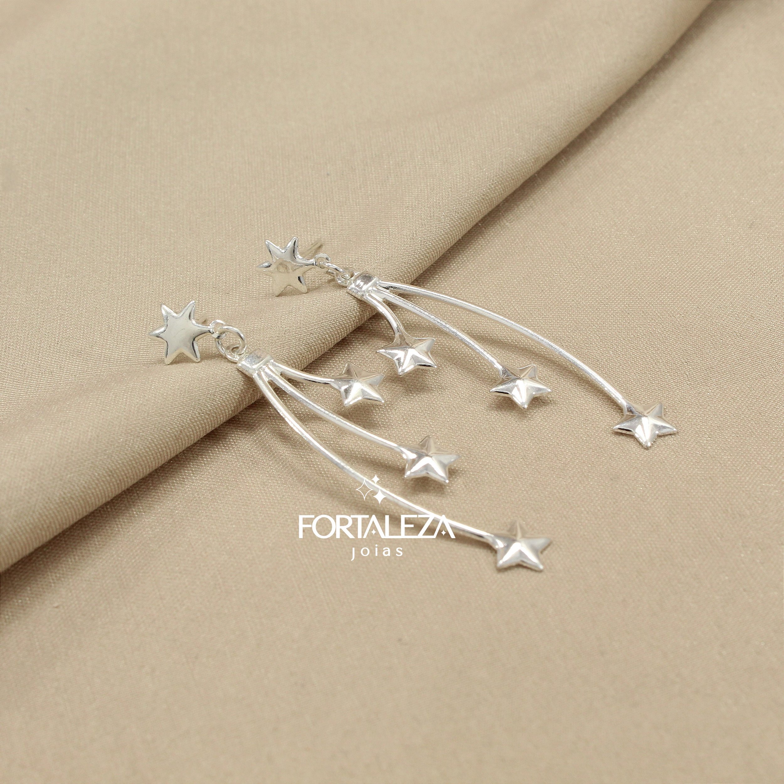 Brinco com Detalhes de Estrela Banhado com 30 Milésimos de Teor de Prata 925 e Finalizado com Verniz de Nanotecnologia