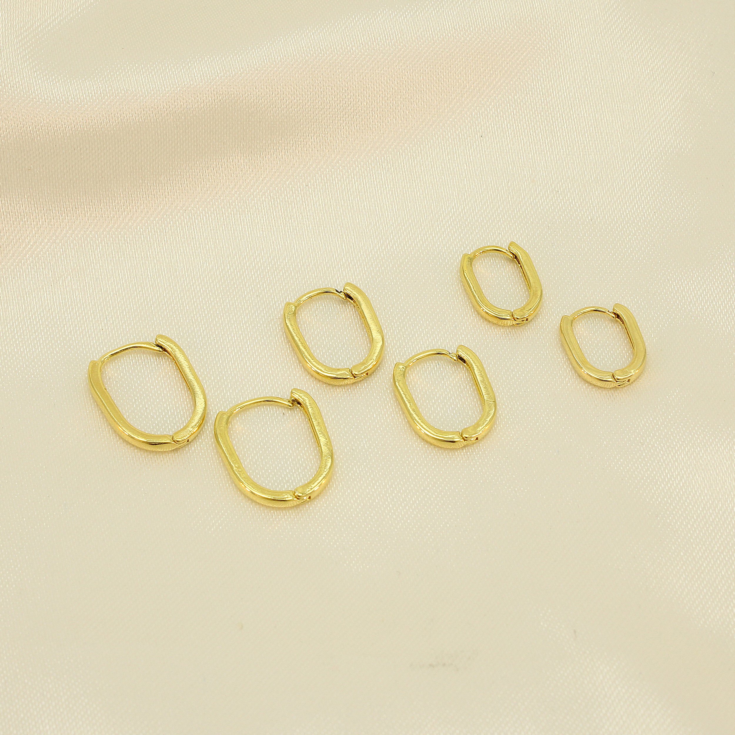 Brinco Argola em Trio Oval Banhado a Ouro 18k