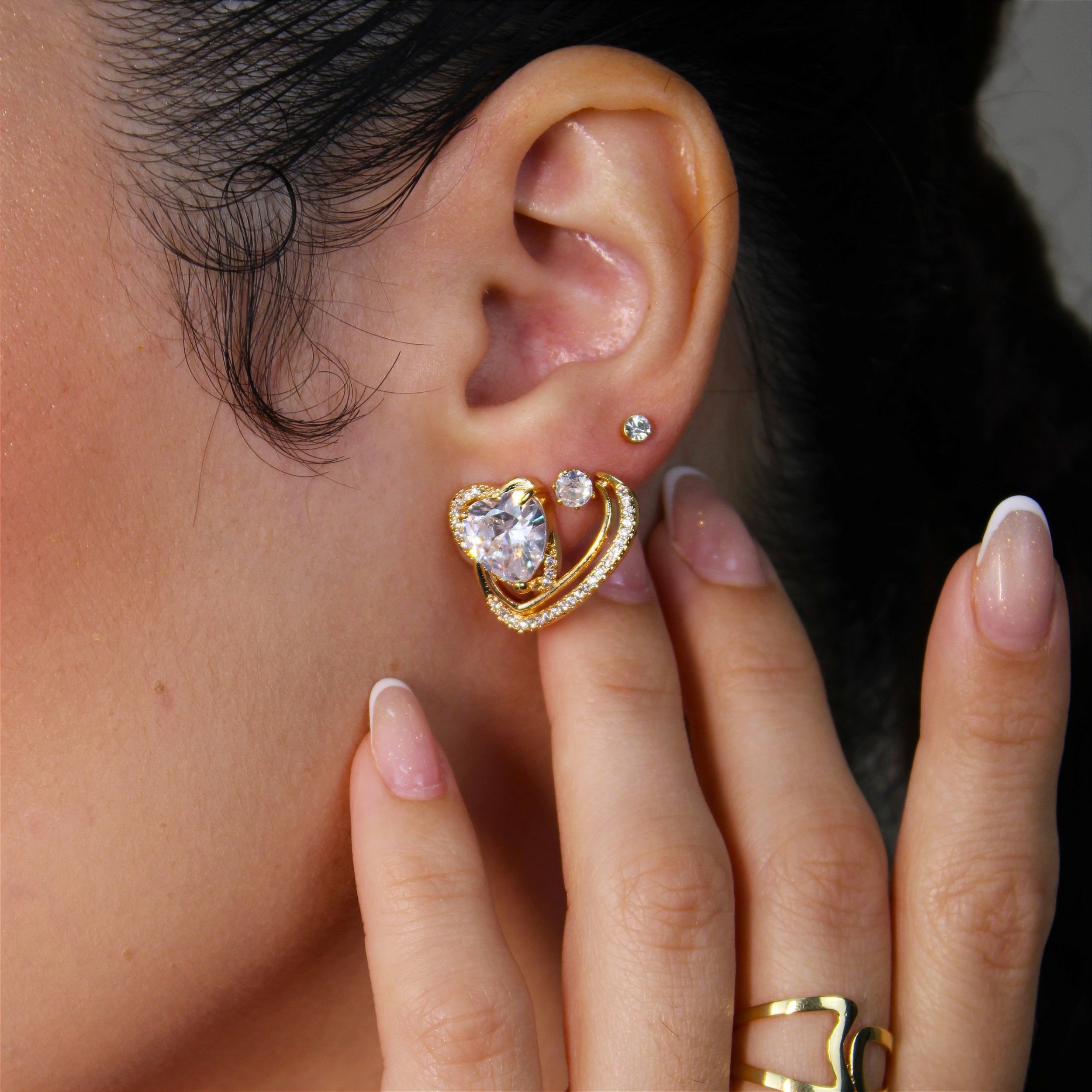 Brinco de Coração Trabalhado em Zircônia Cristal Banhado a Ouro 18k
