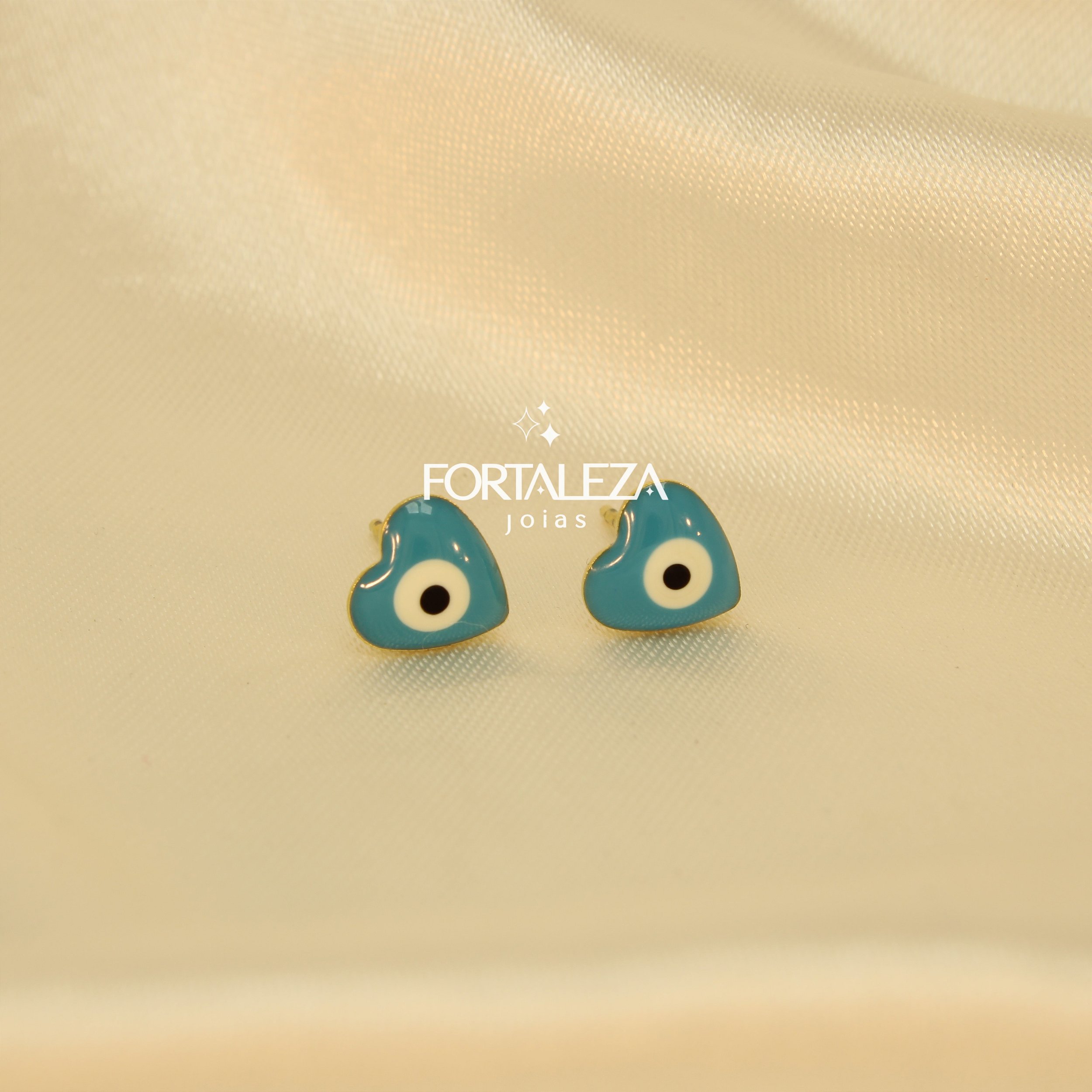 Brinco de Coração Olho Grego Resinado e Banhado a Ouro 18k
