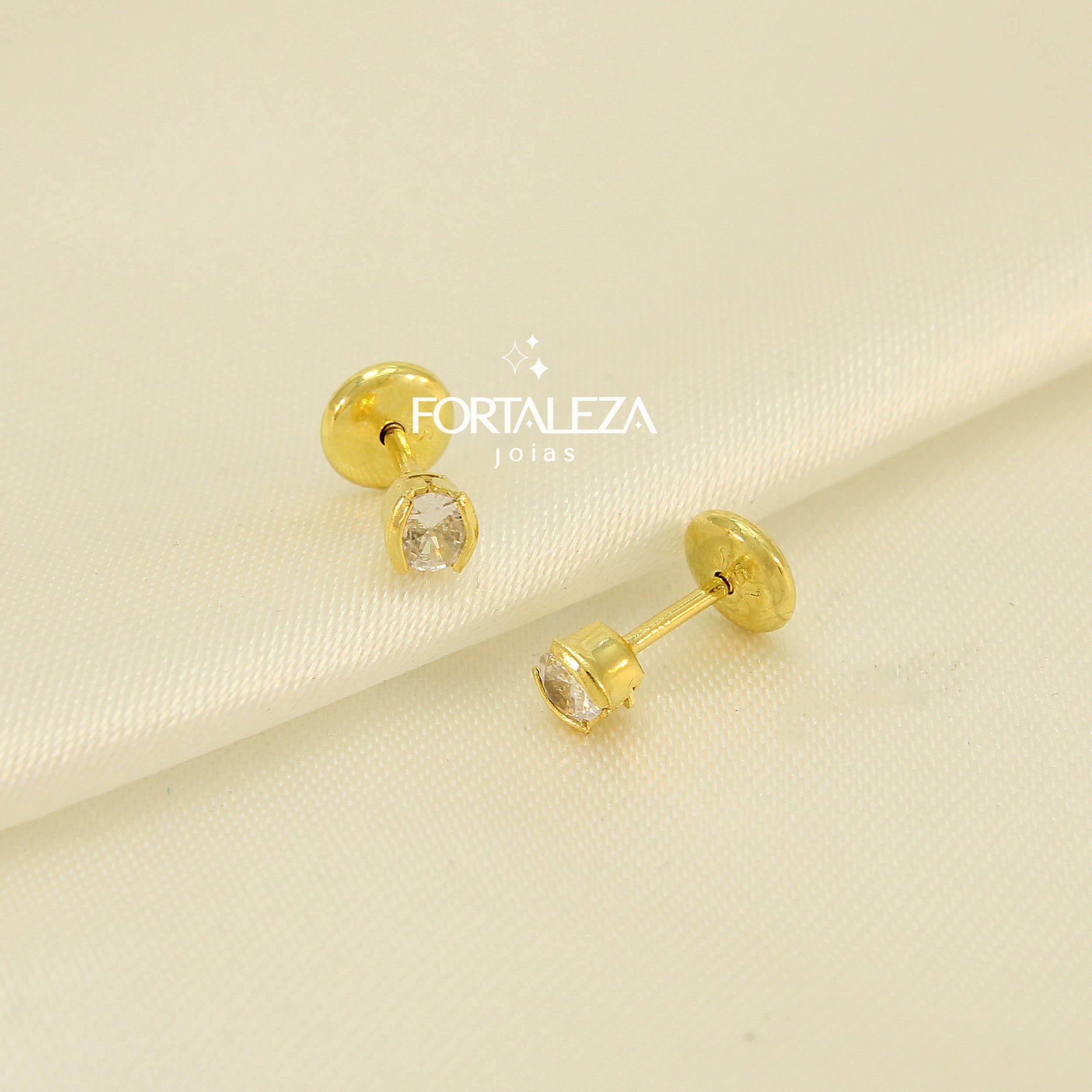Brinco Ponto de Luz com Zircônia Cristal Banhado a Ouro 18k