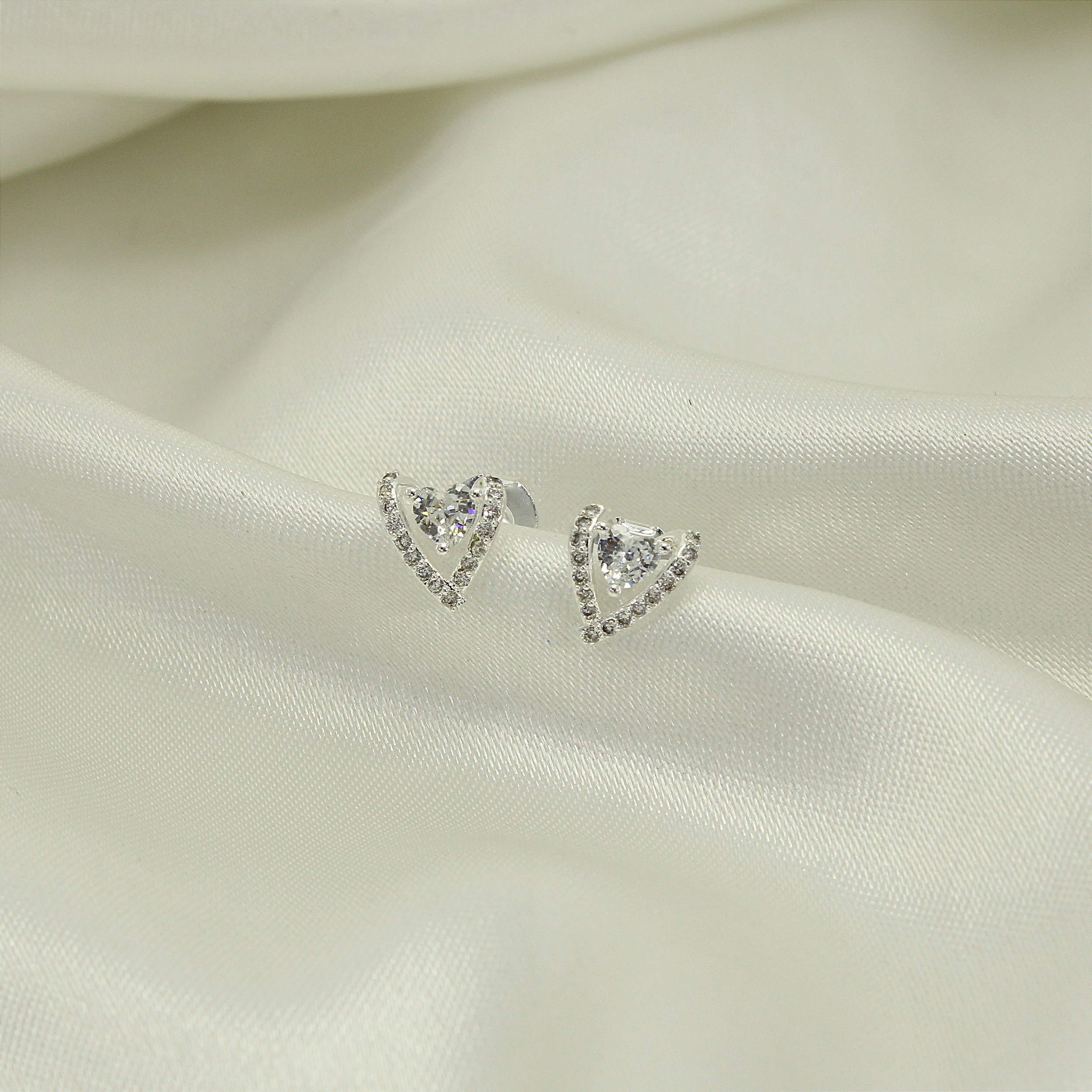 Brinco com Design de Coração Cravejado em Zircônia Cristal Banhado a Prata 925