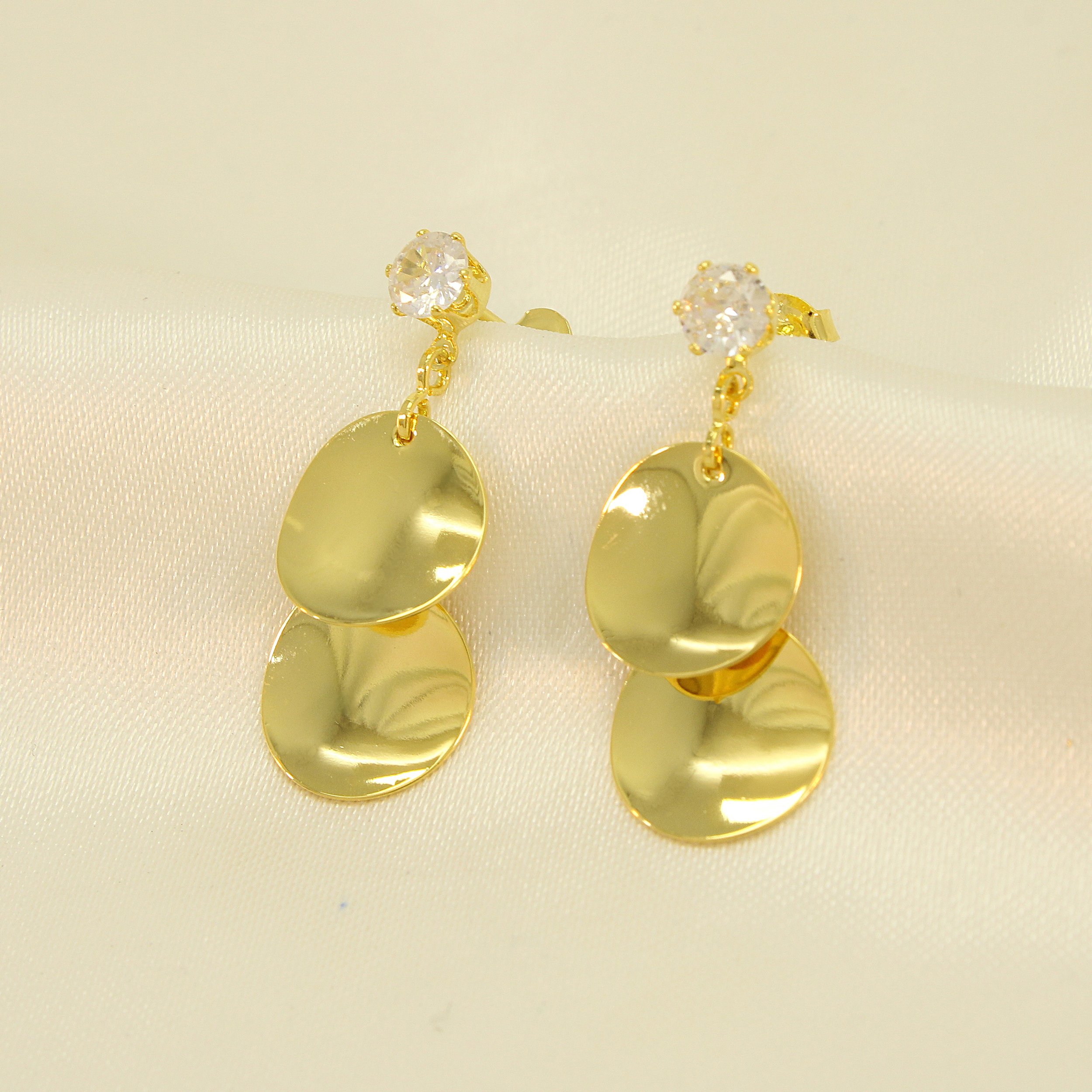 Brinco de Medalhinhas com Zircônia Cristal Banhado a Ouro 18k