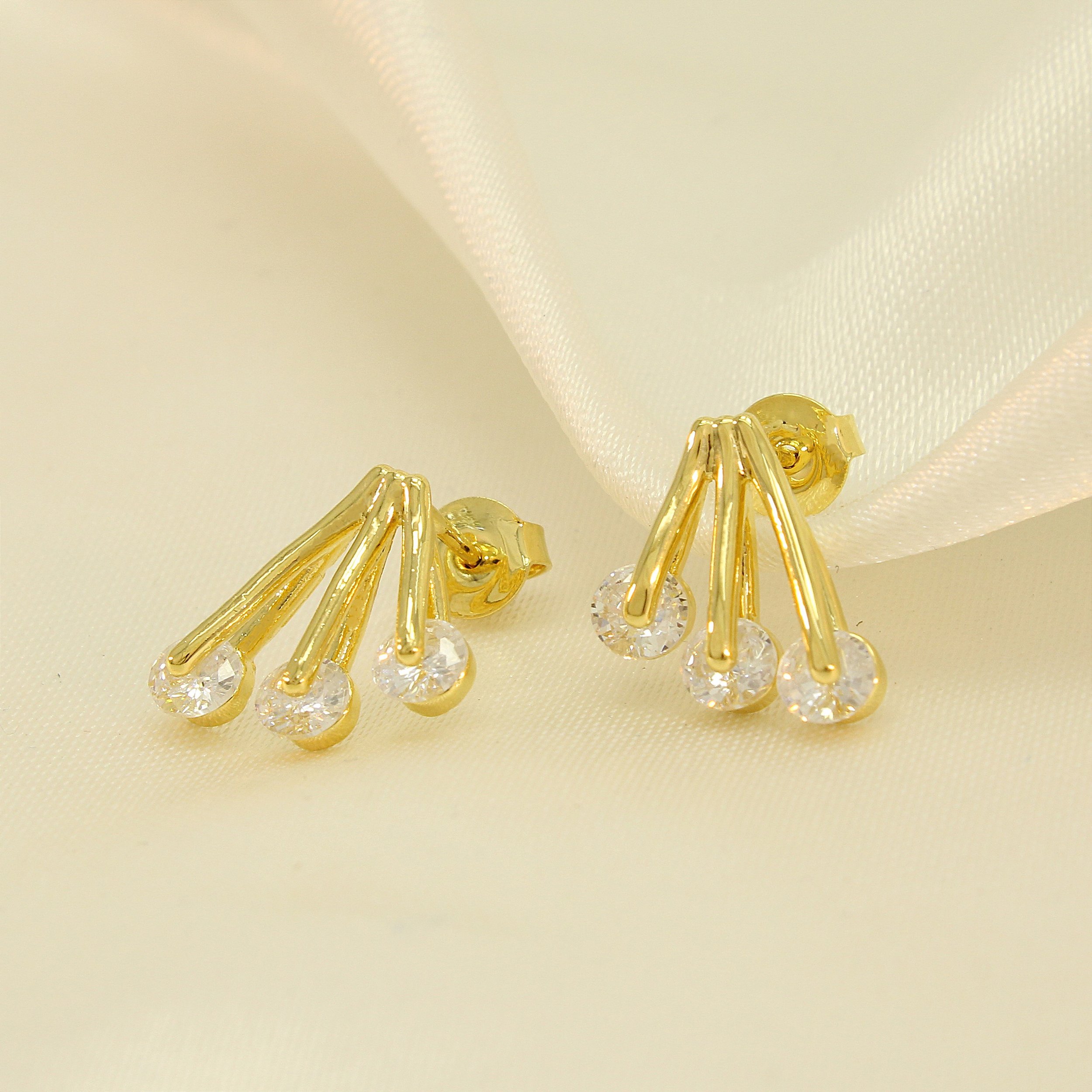 Brinco com Três Zircônias Cristais em Hastes Banhado a Ouro 18k