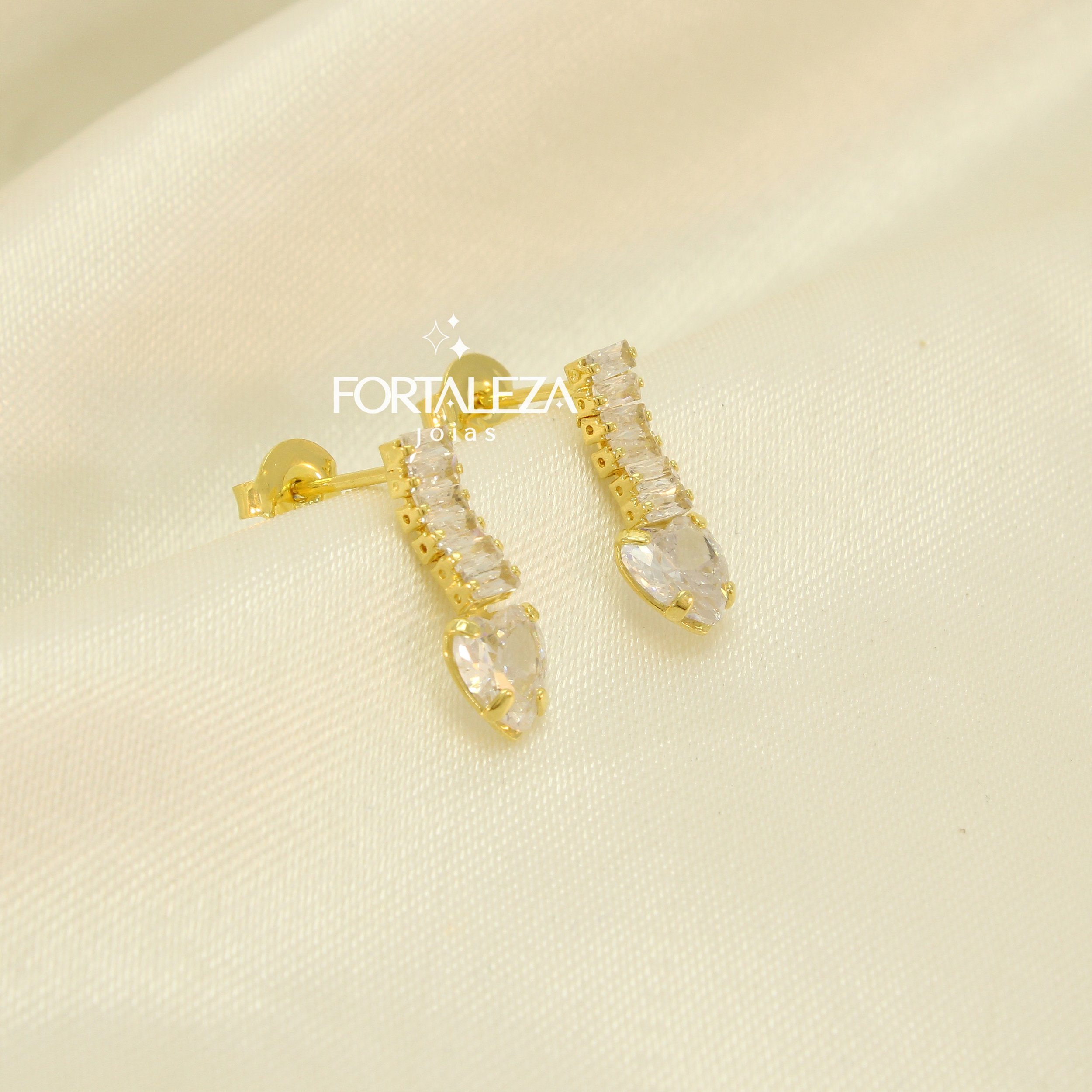 Brinco Cravejado em Zircônia Cristal Banhado a Ouro 18k
