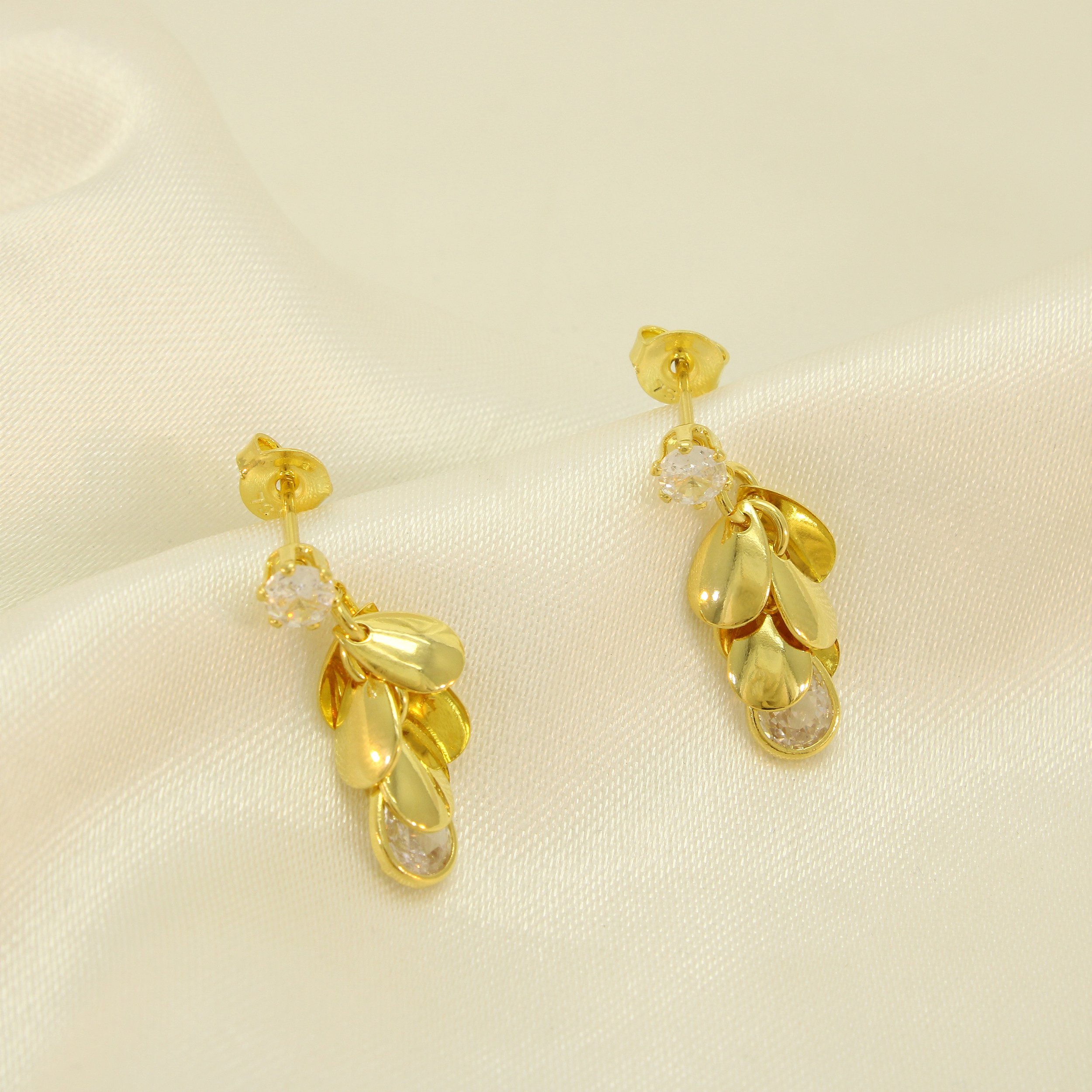 Brinco Cascata de Gotas com Zircônia Banhado a Ouro 18k