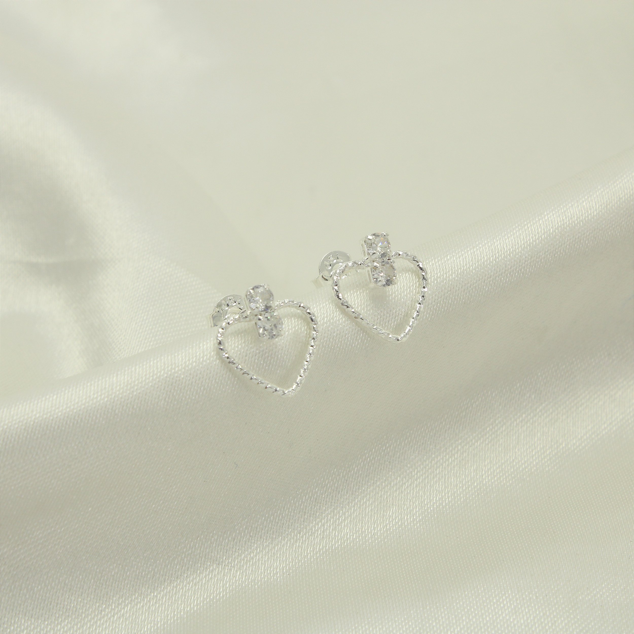 Brinco Coração com Detalhe em Zircônia Cristal Banhado a Prata 925