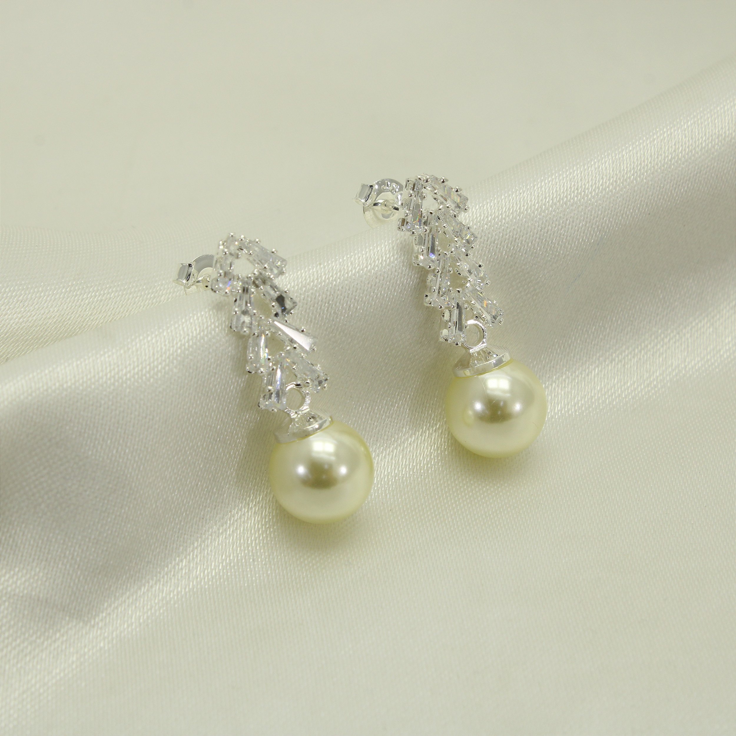 Brinco de Pérola com Zircônia Cristal Banhado a Prata 925