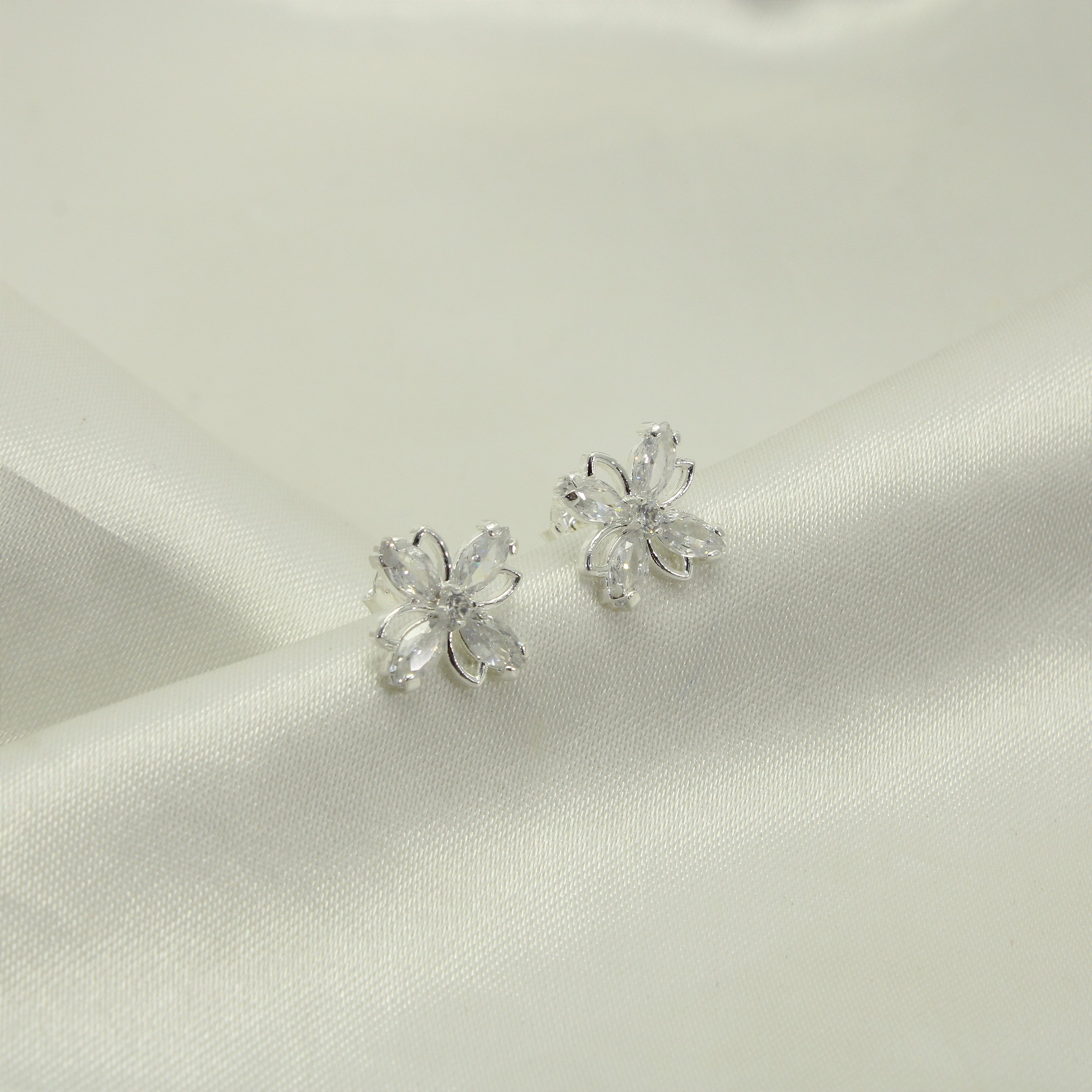 Brinco de Flor com Zircônia Cristal Banhado a Prata 925