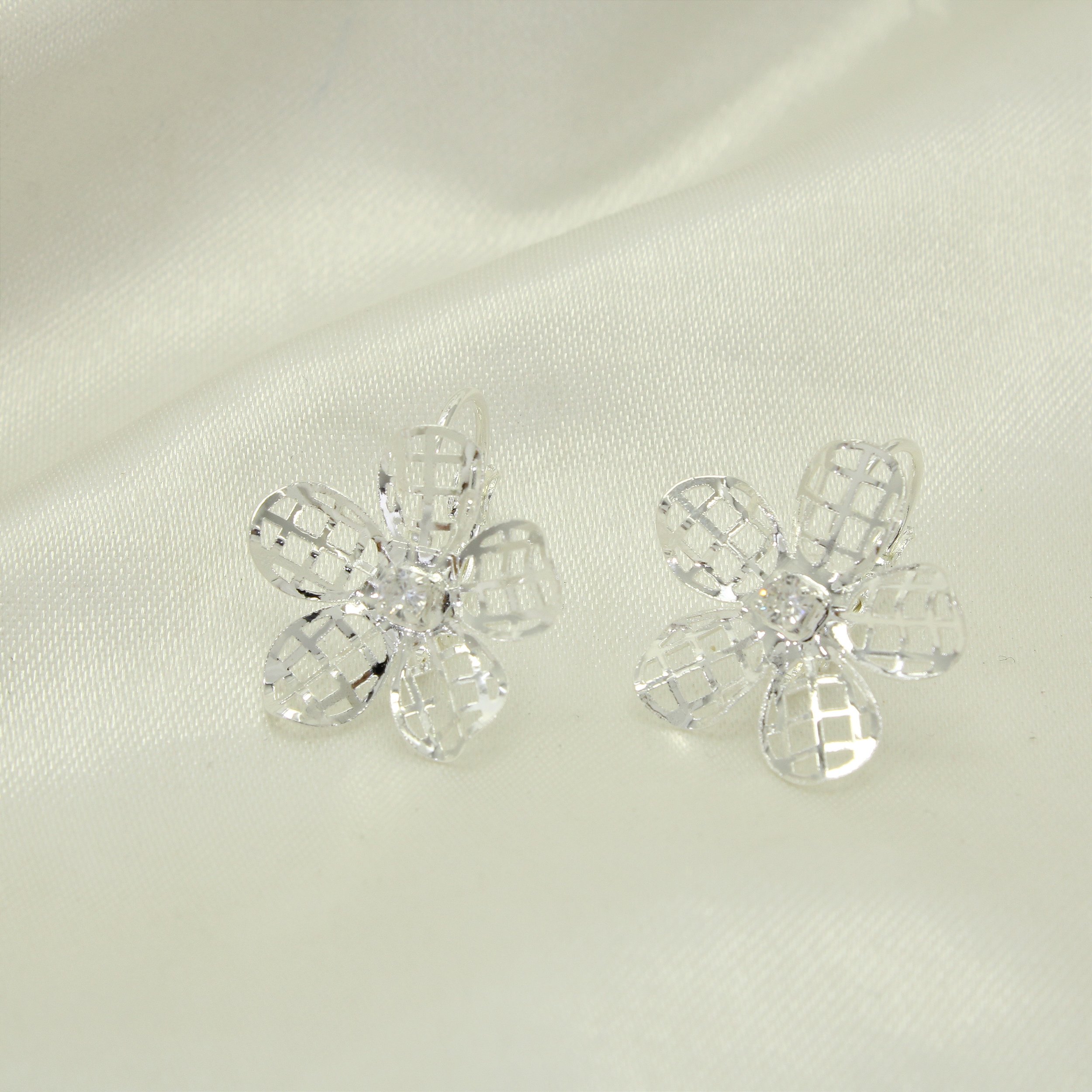 Brinco de Flor com Detalhe em Zircônia Cristal Banhado a Prata 925