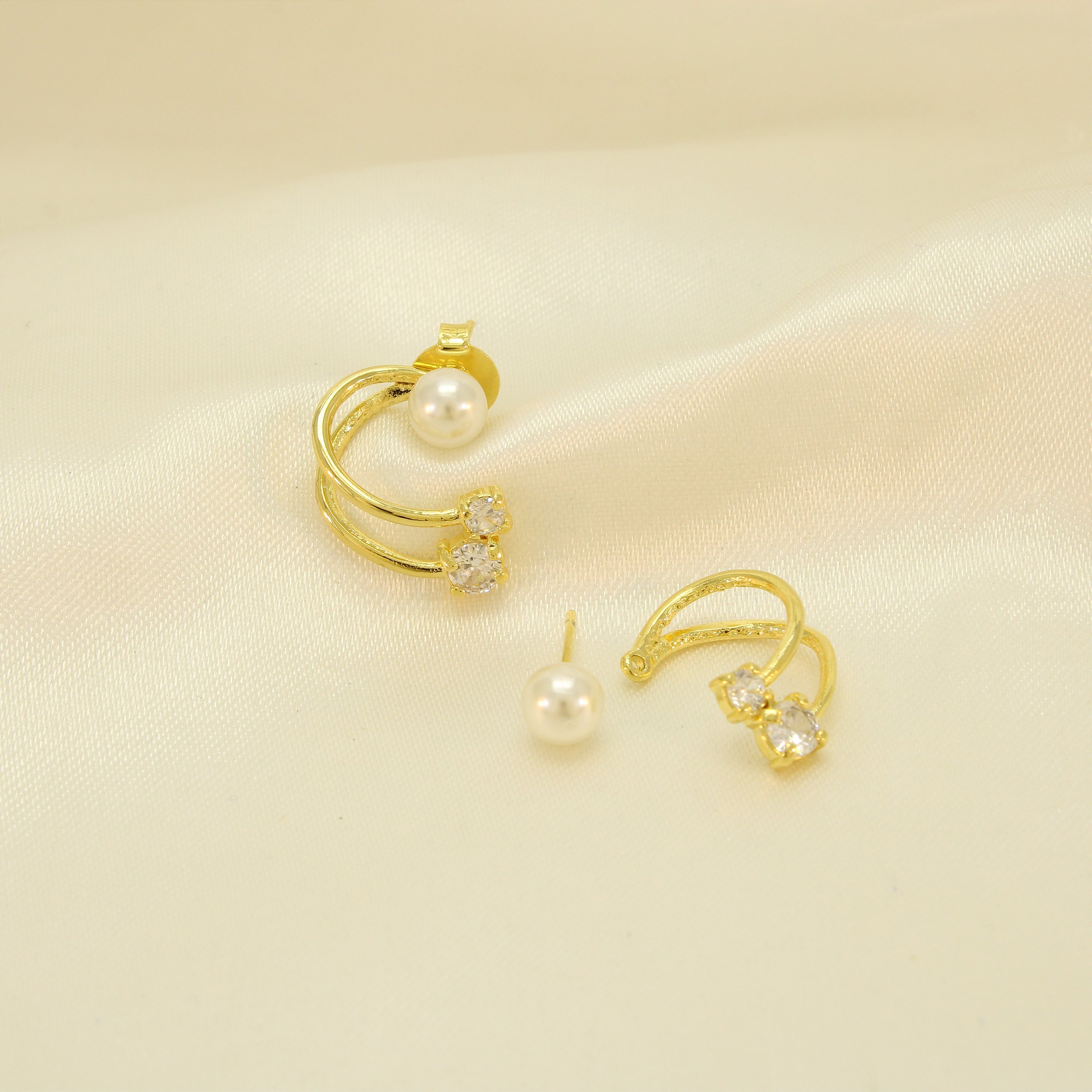 Brinco Dois em Um de Pérola e Zircônia Cristal Banhado a Ouro 18k