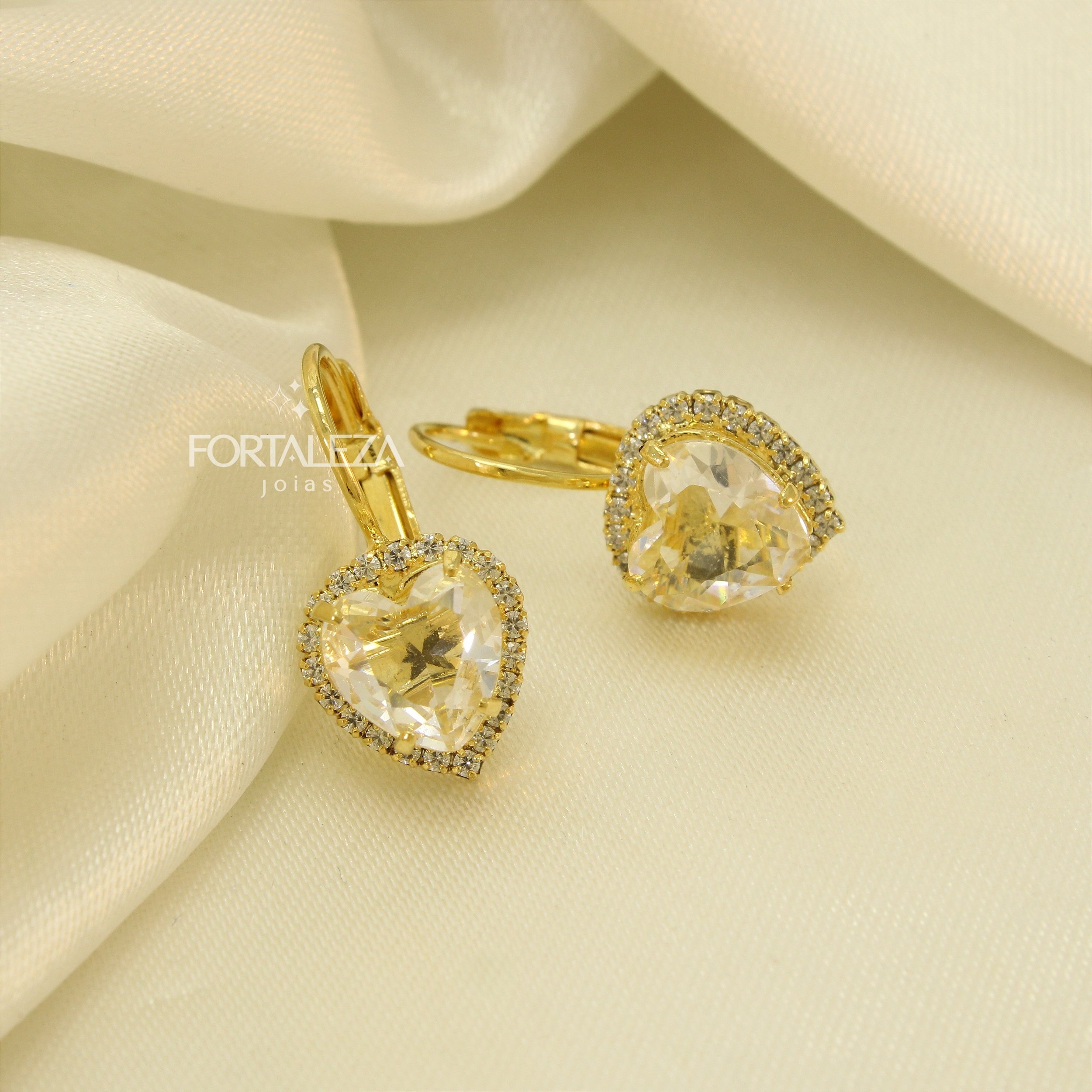 Brinco de Coração com Zircônias Banhado a Ouro 18k
