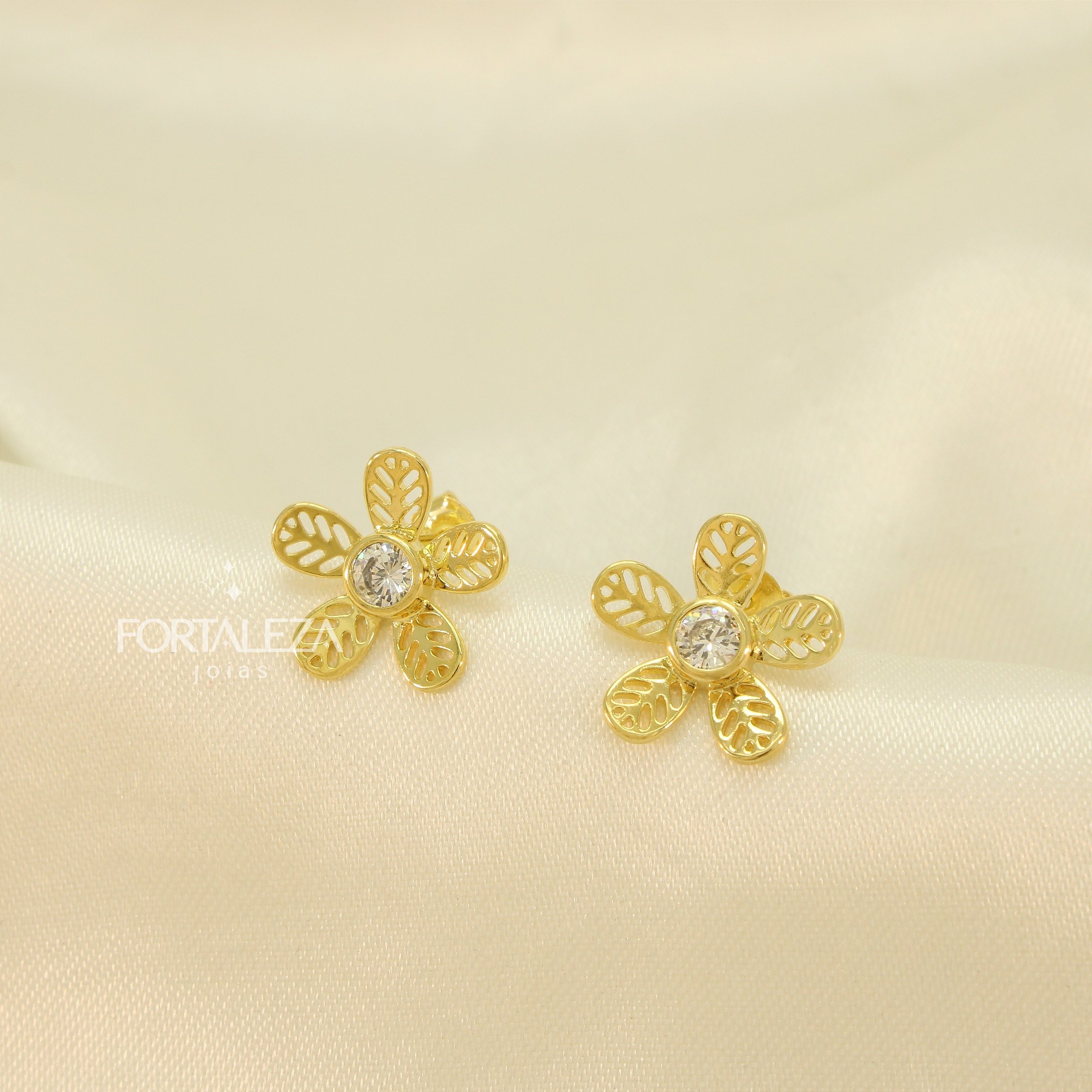 Brinco de Flor com Zircônia Cristal Banhado a Ouro 18k
