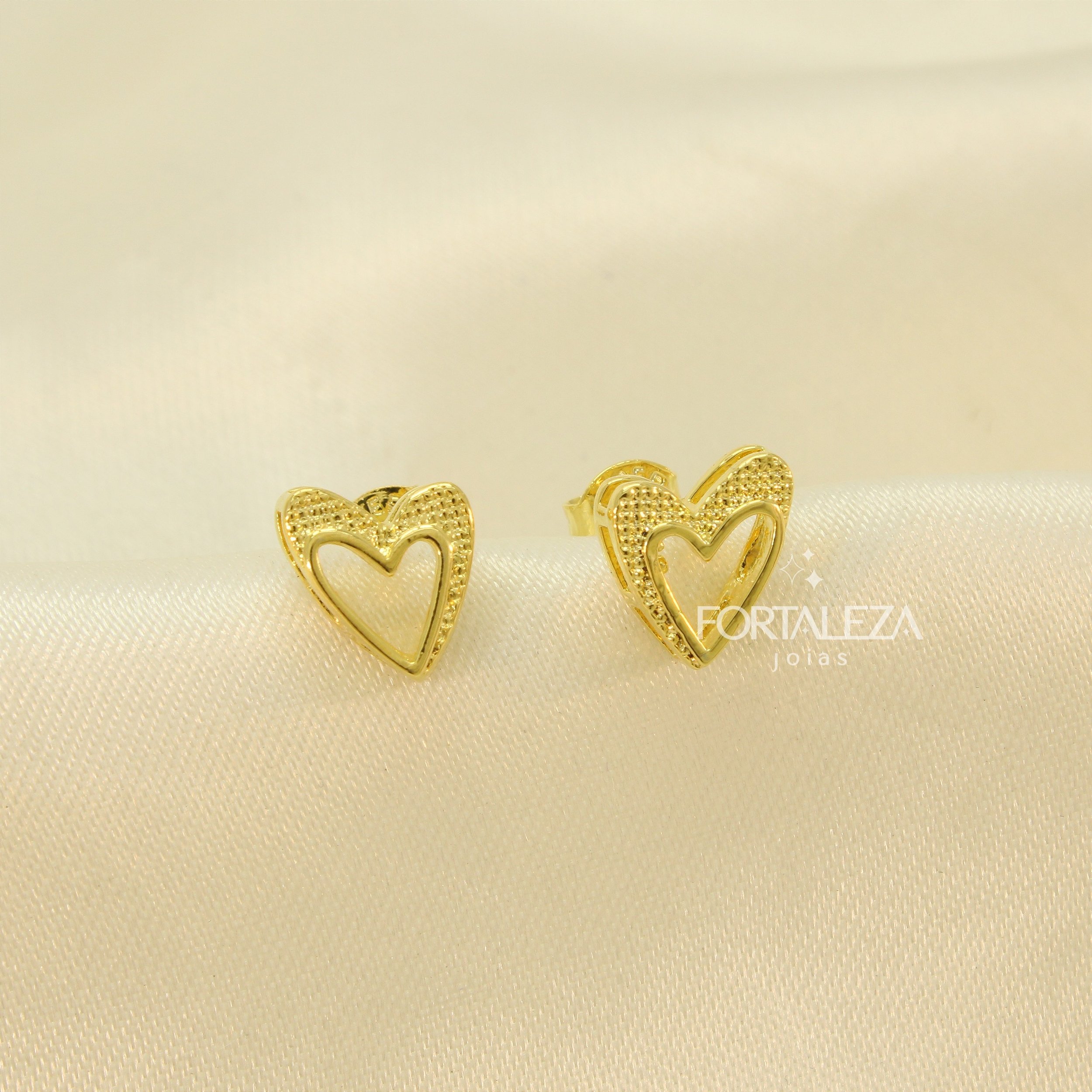 Brinco de Coração Vazado Banhado a Ouro 18k