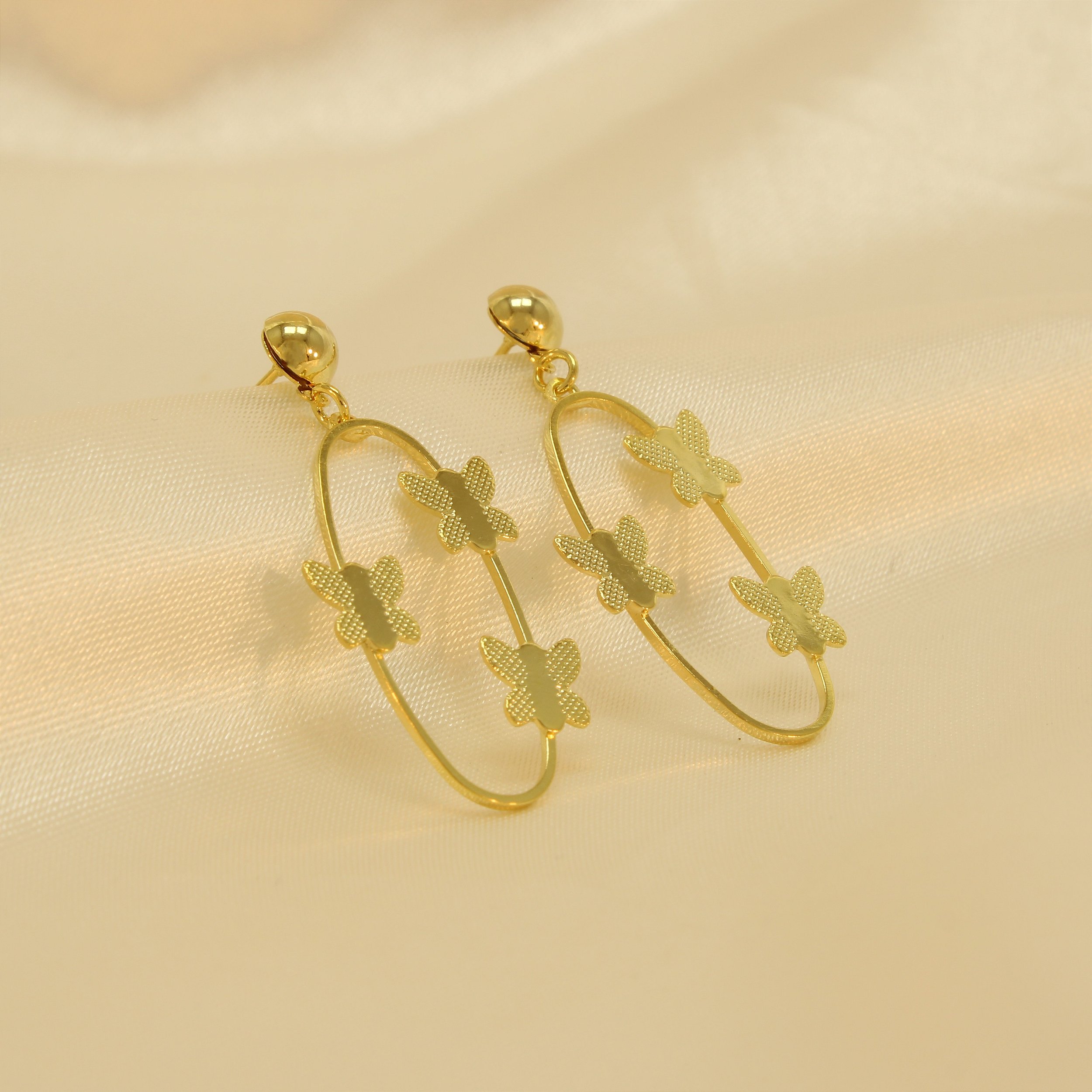 Brinco Oval com Borboletas Texturizadas Banhado a Ouro 18k