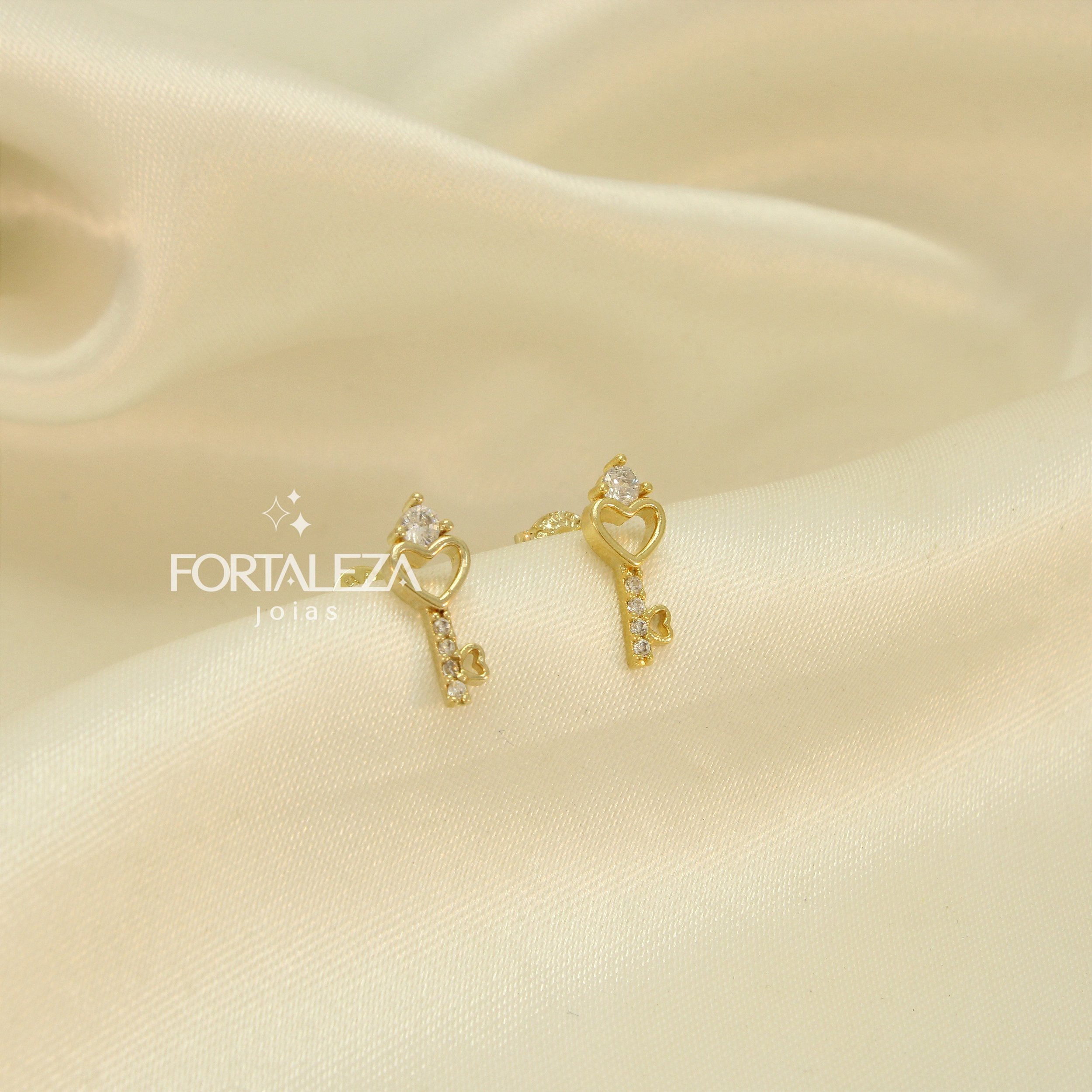 Brinco de Chave Cravejado em Zircônia Cristal Banhado a Ouro 18k