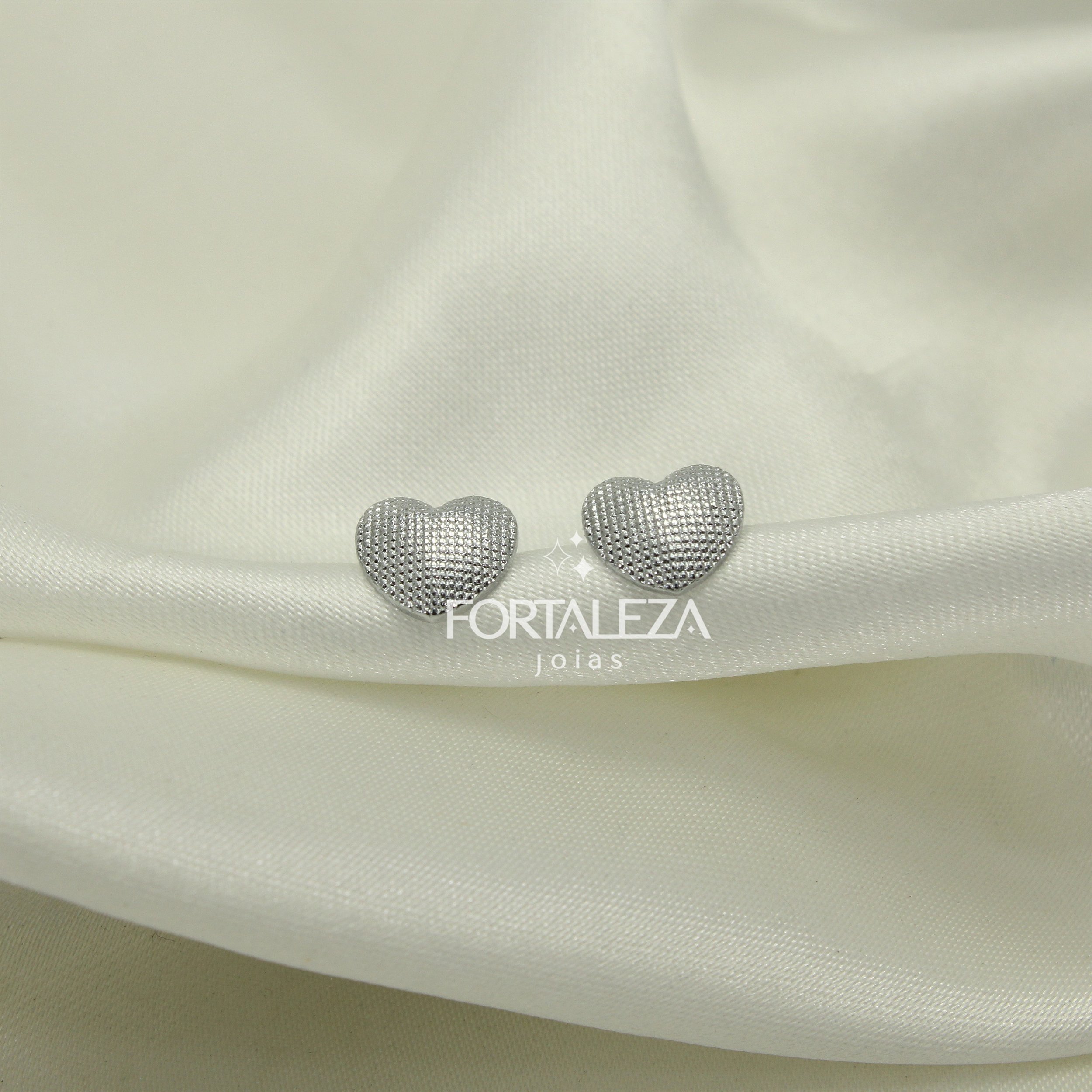 Brinco Coração Texturizado Banhado a Ouro Branco