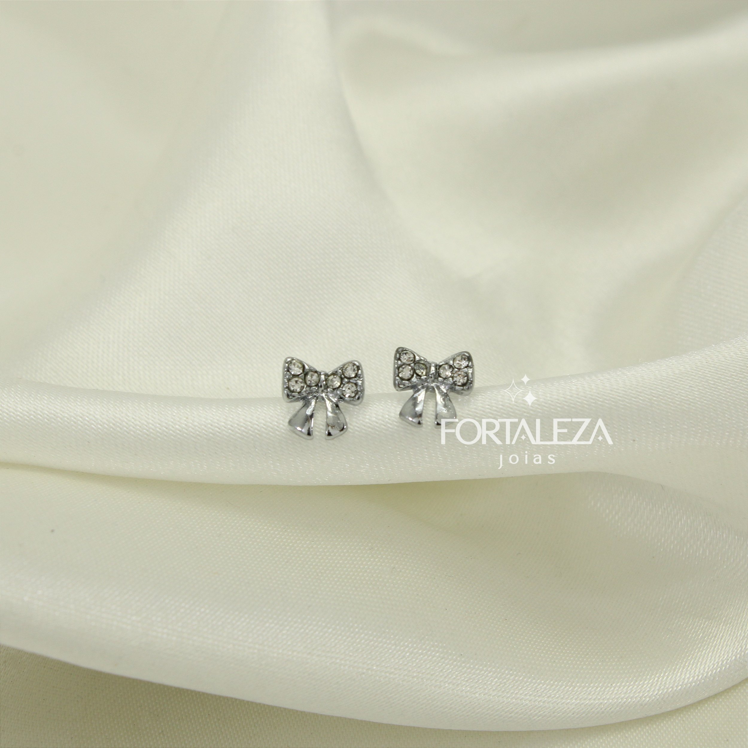 Brinco de Laço Cravejado em Zircônia Banhado a Ouro Branco