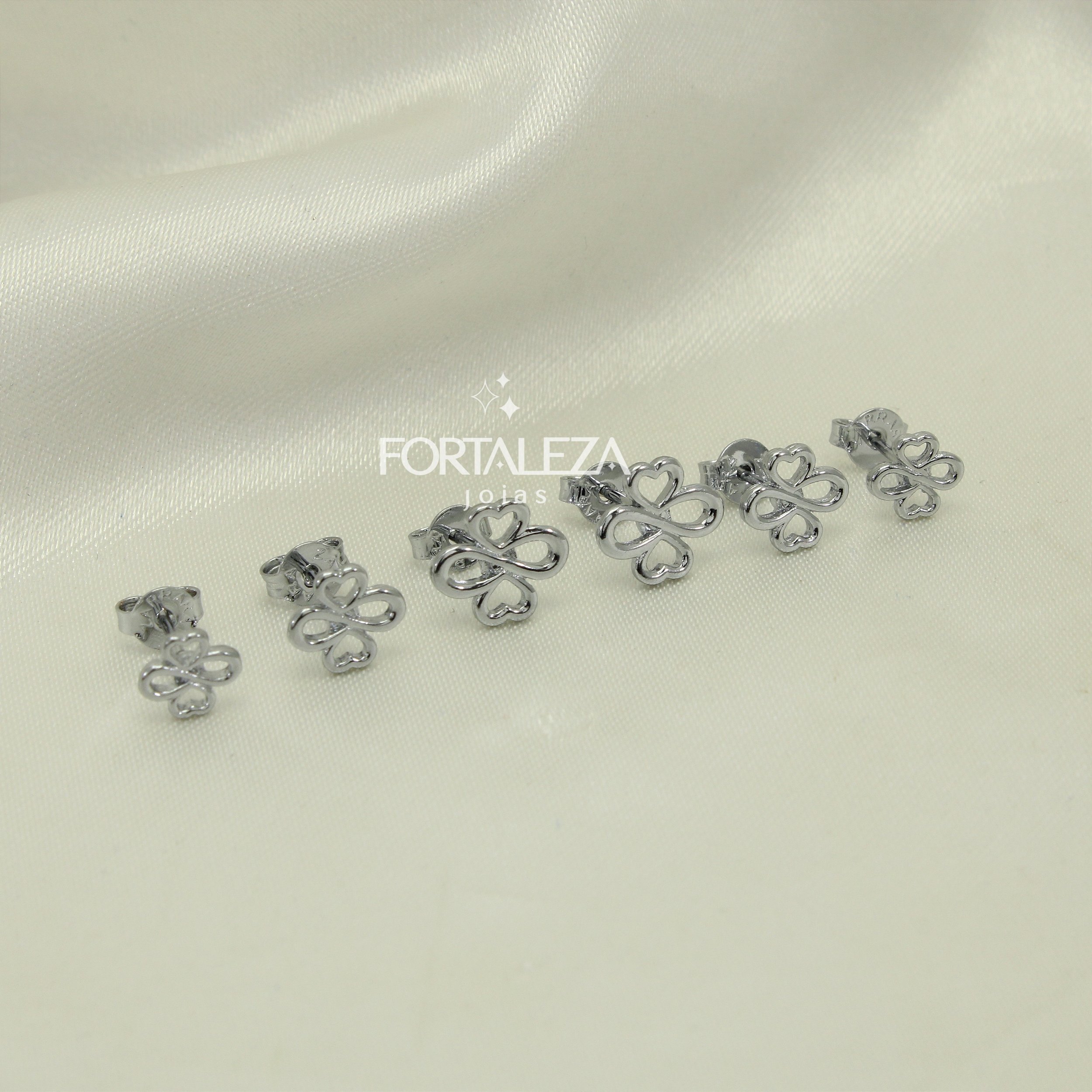 Brinco em Trio Trevo de Corações e Infinito Banhado a Ouro Branco