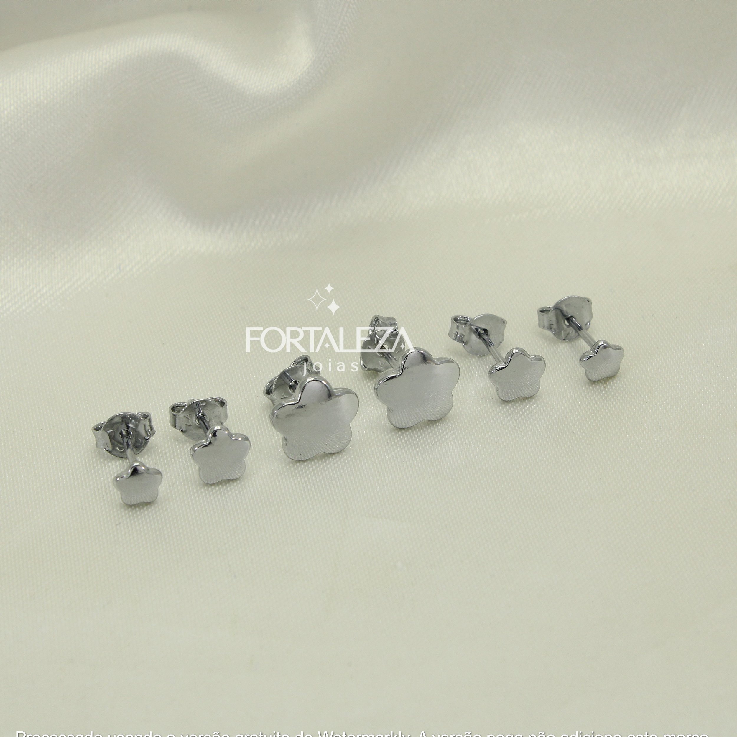 Brinco em Trio de Flor Lisa Banhado a Ouro Branco