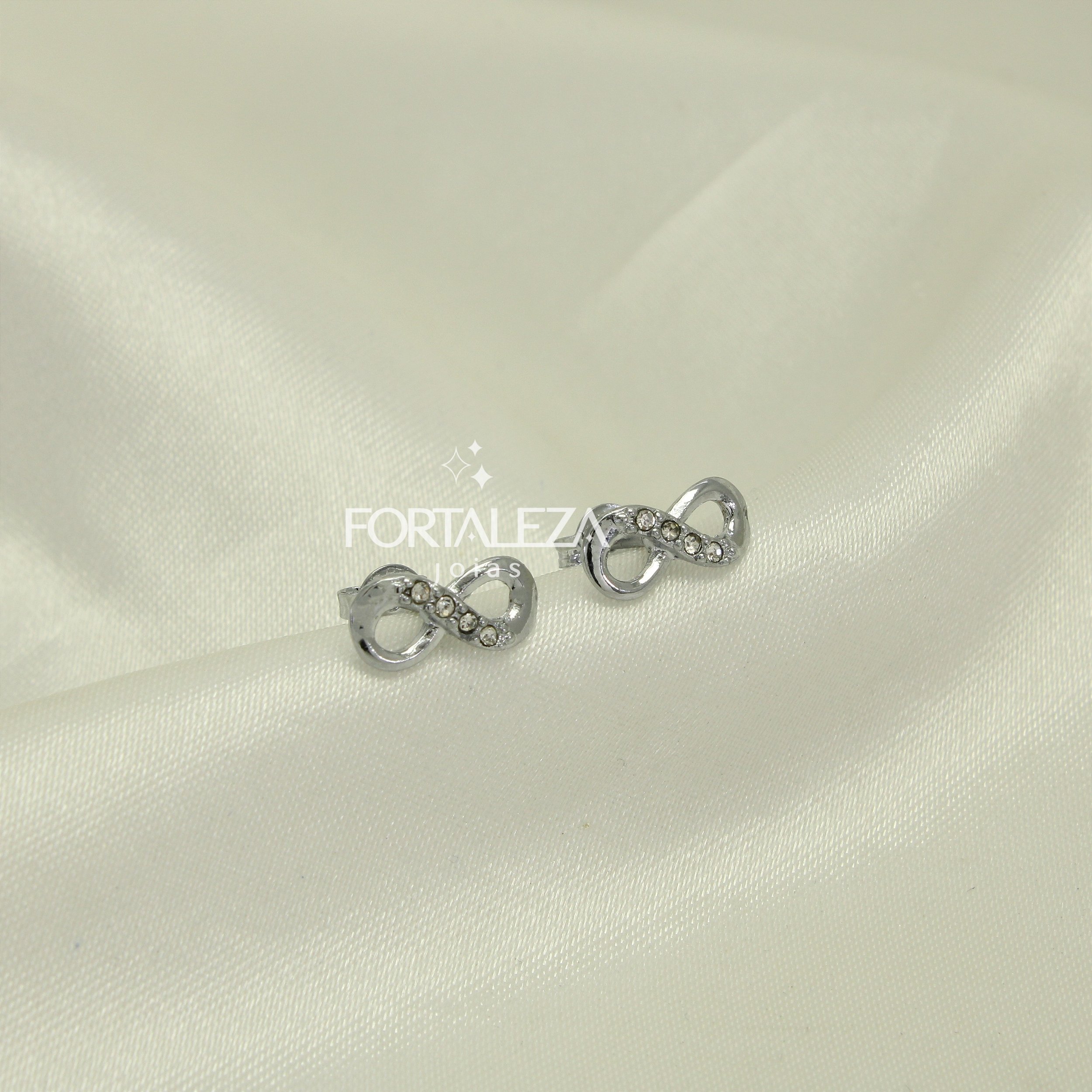 Brinco Infinito com Zircônia Cristal Banhado a Ouro Branco