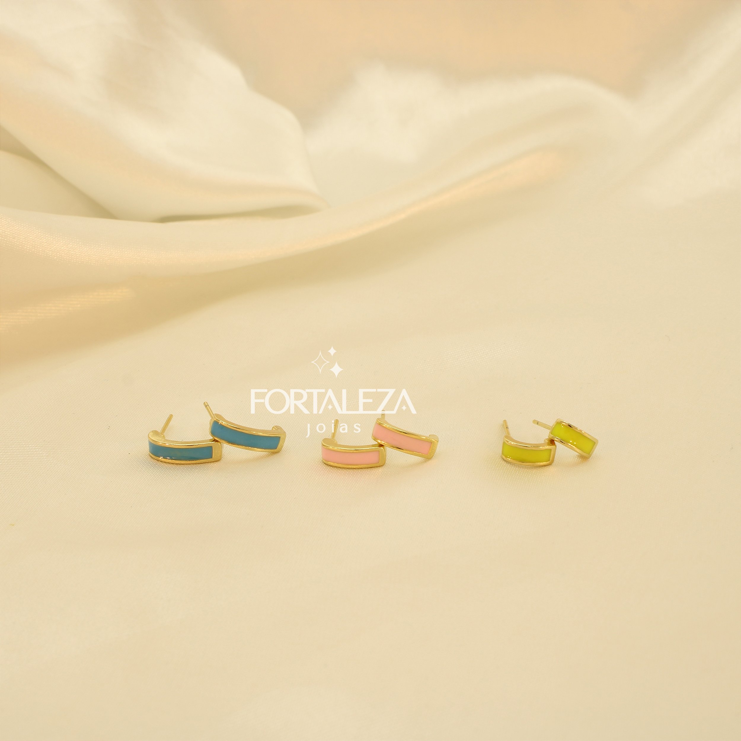 Brinco em Trio com Design Resinado Banhado a Ouro 18k