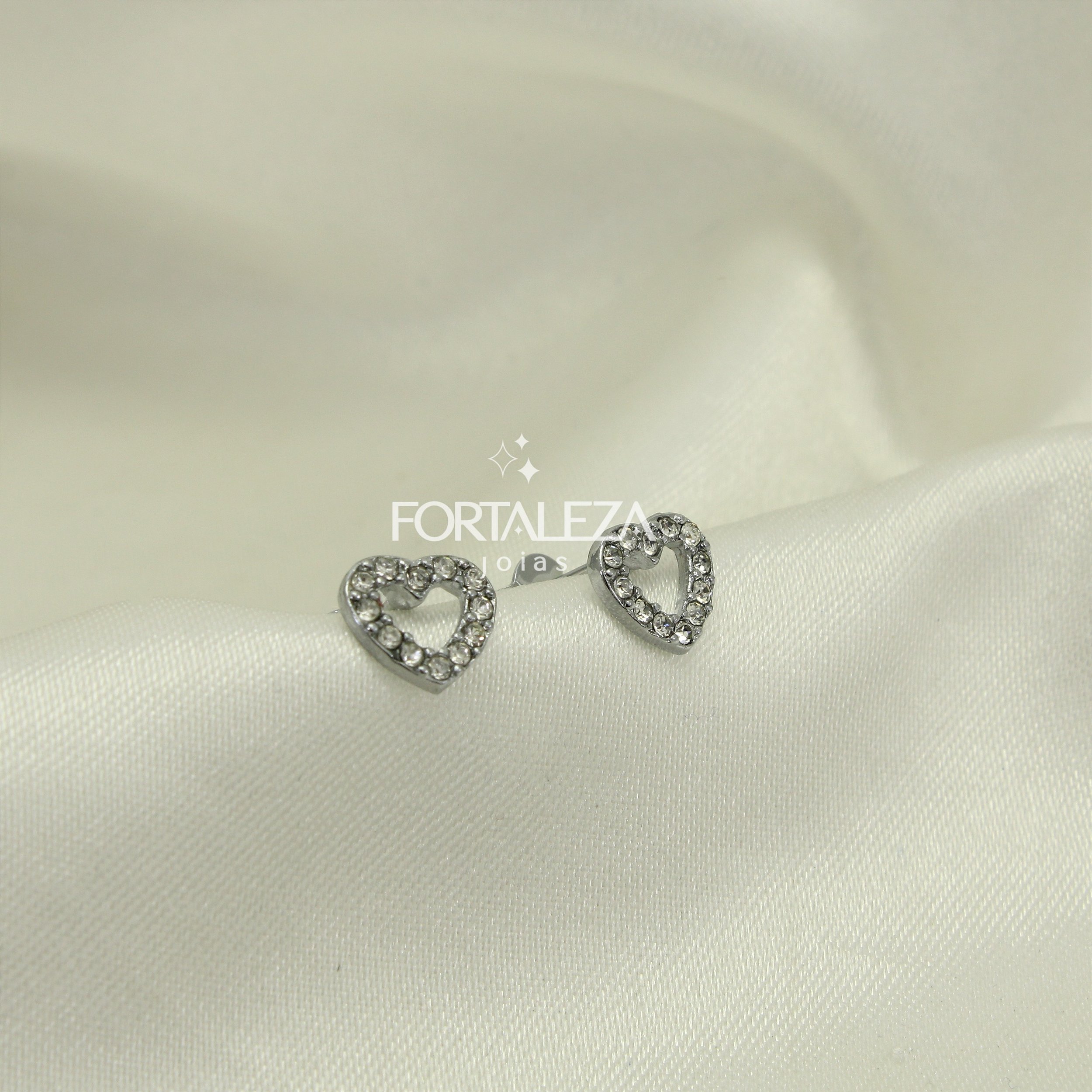 Brinco Coração Cravejado em Zircônia Cristal Banhado a Ouro Branco