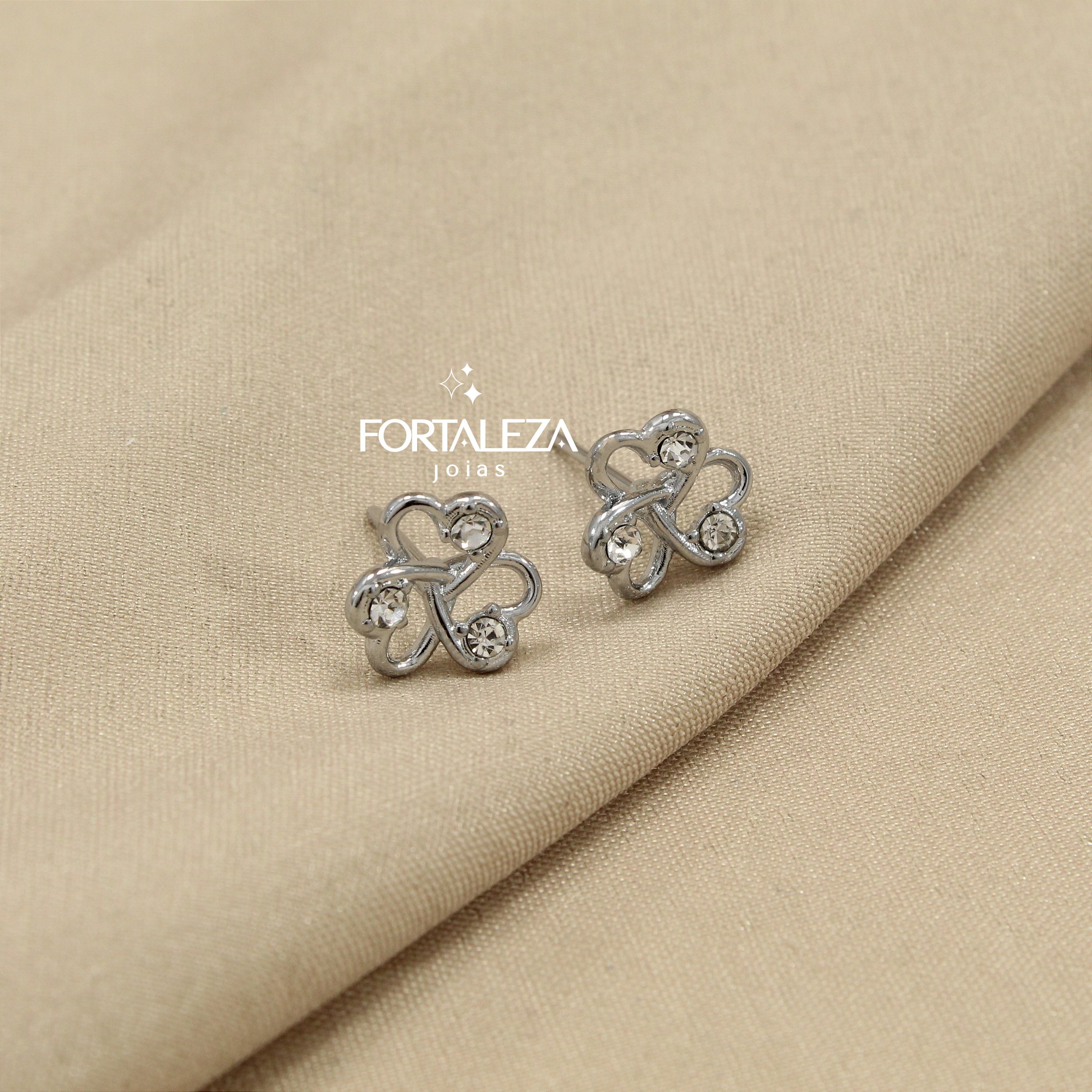 Brinco Trevo com Detalhe em Zircônia Cristal Banhado a Ouro Branco