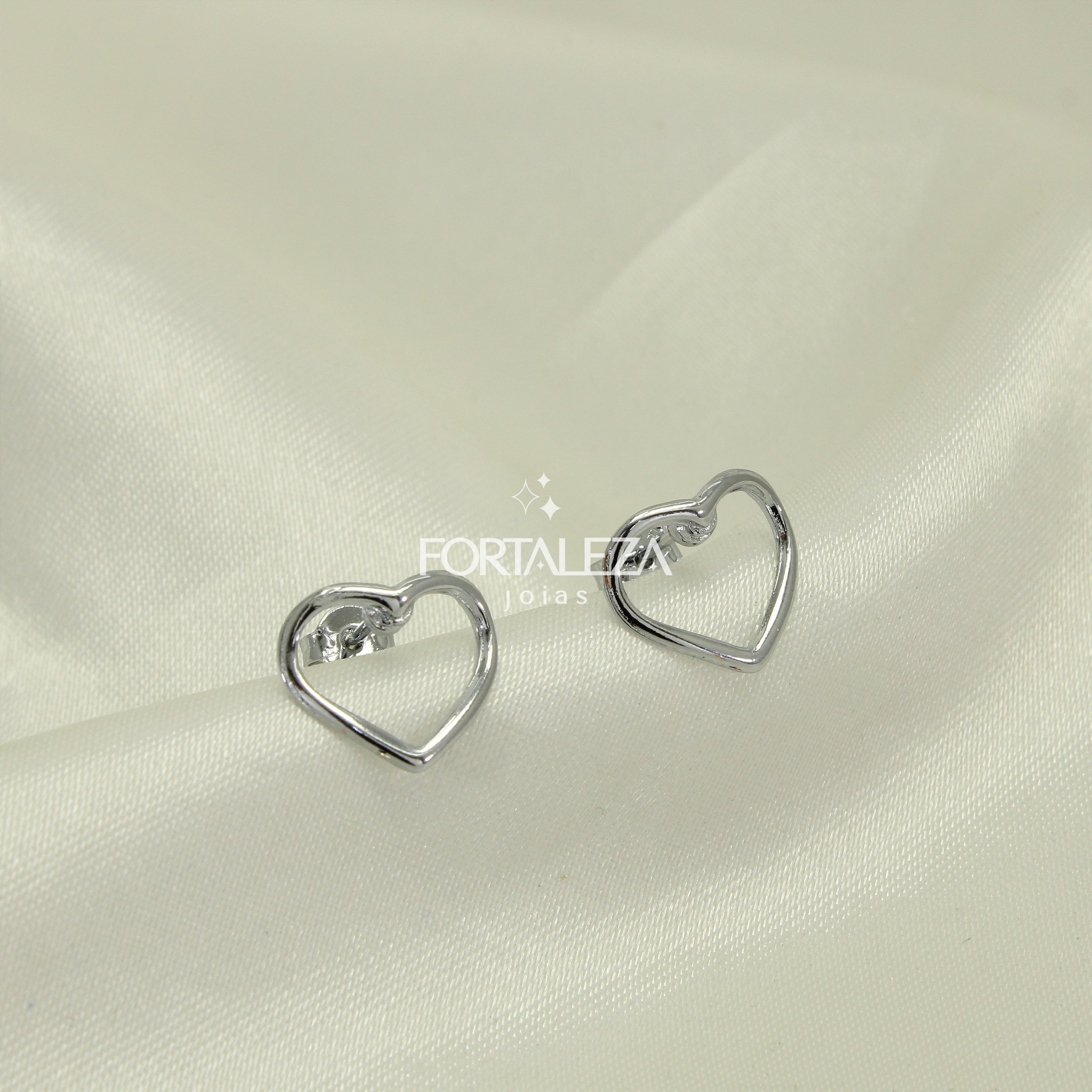 Brinco de Coração Vazado Banhado a Ouro Branco