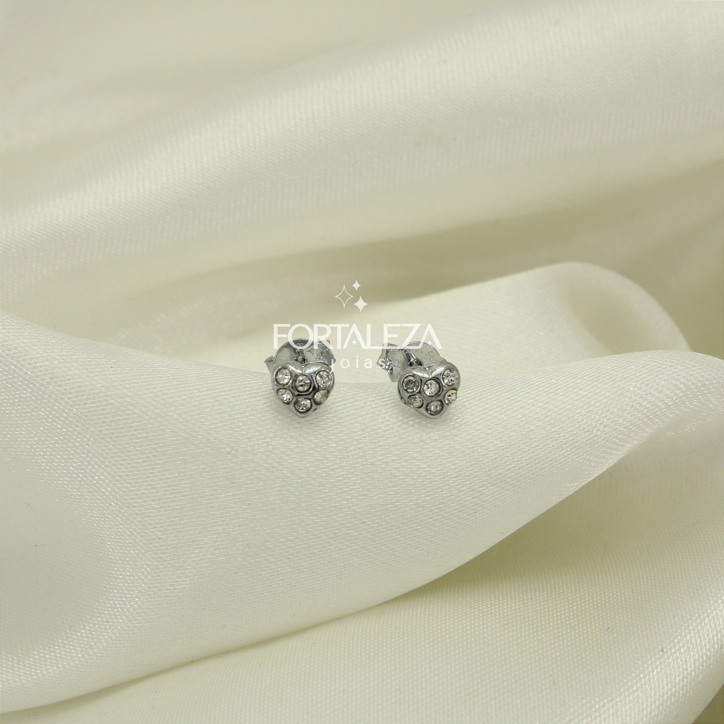 Brinco Coração Cravejado em Zircônia Cristal Banhado a Ouro Branco