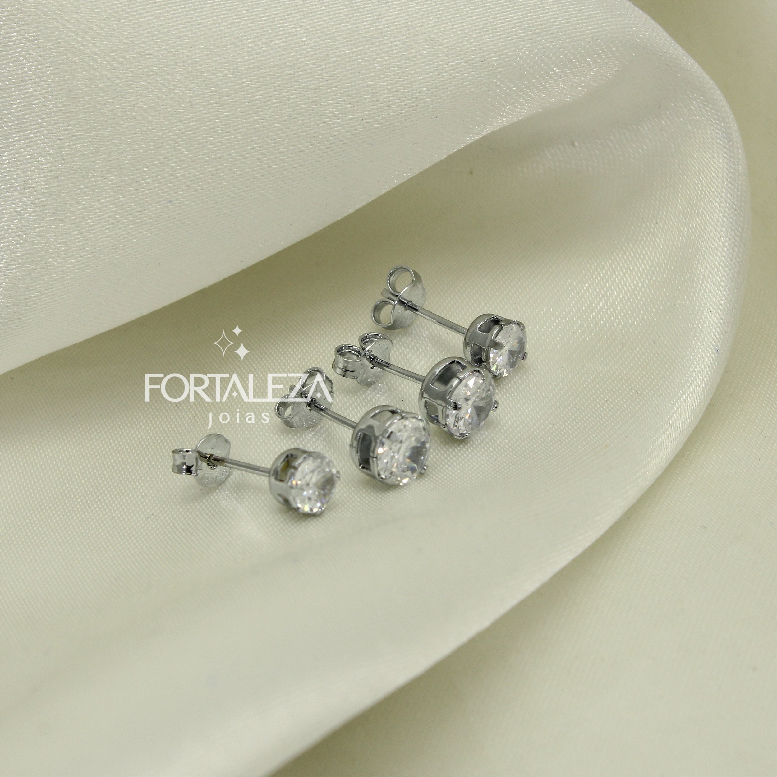 Brinco em Duo Ponto de Luz de Zircônia Cristal Banhado a Ouro Branco