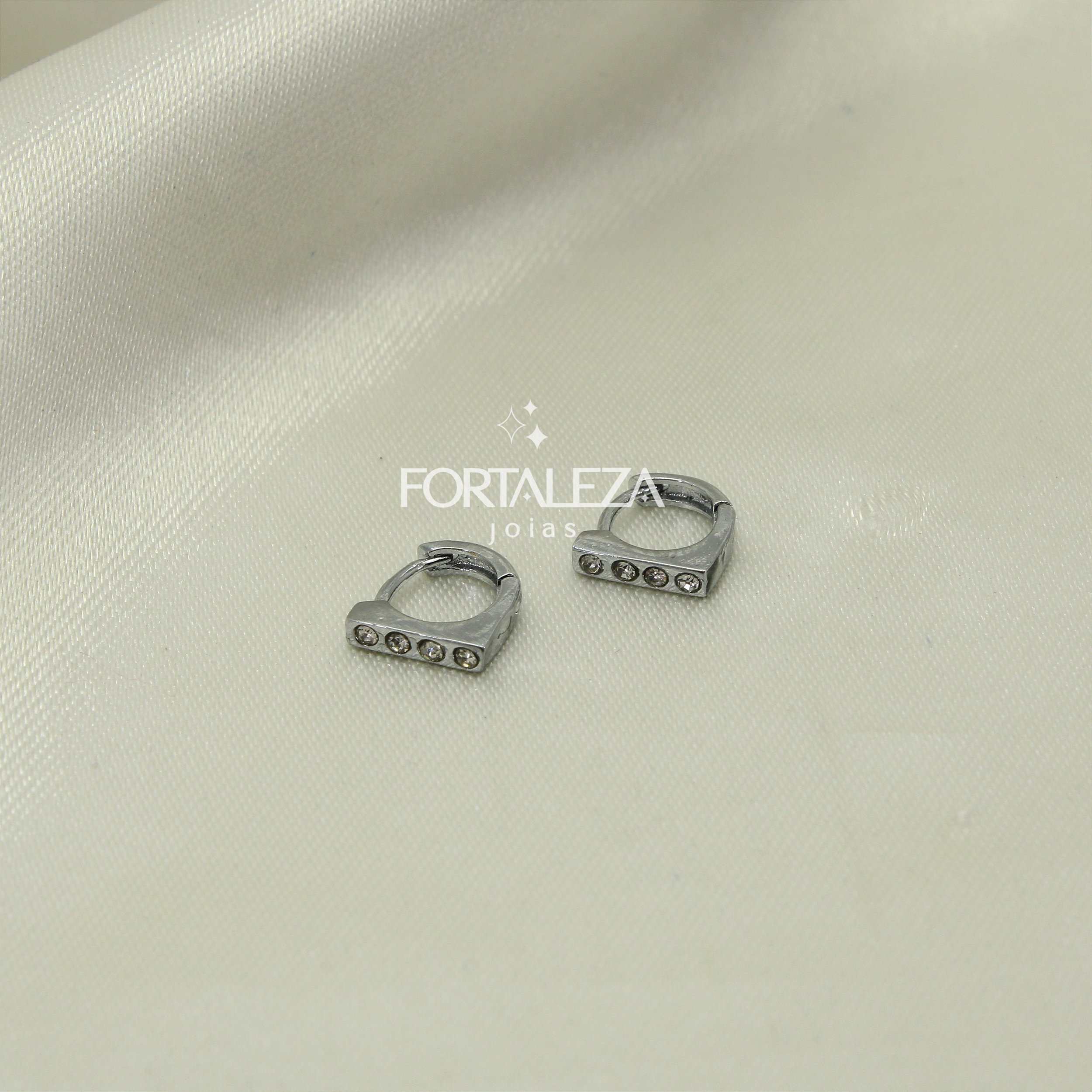 Brinco Argola com Zircônia Cristal Banhado a Ouro Branco