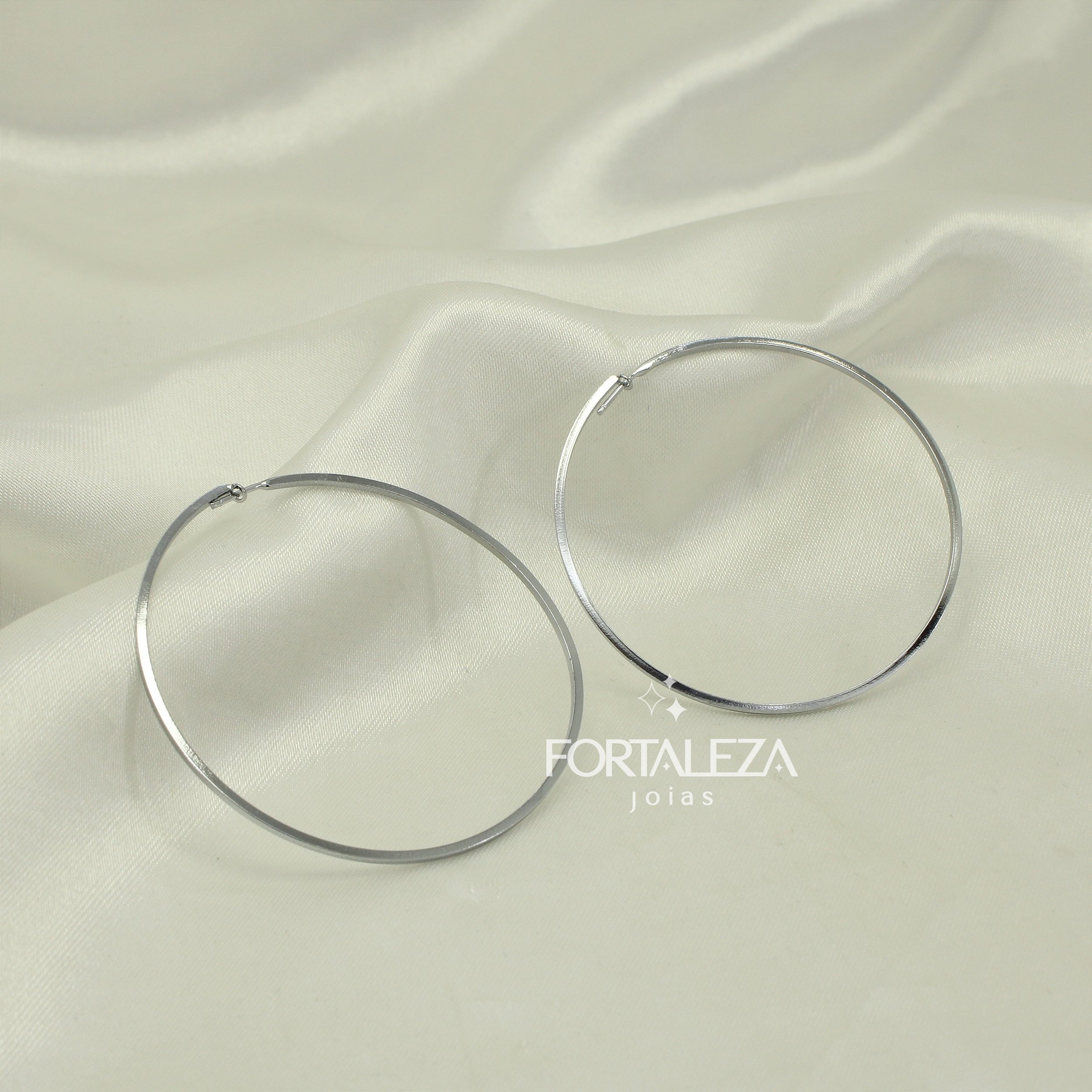 Brinco Argola de Aro Liso Banhado a Ouro Branco
