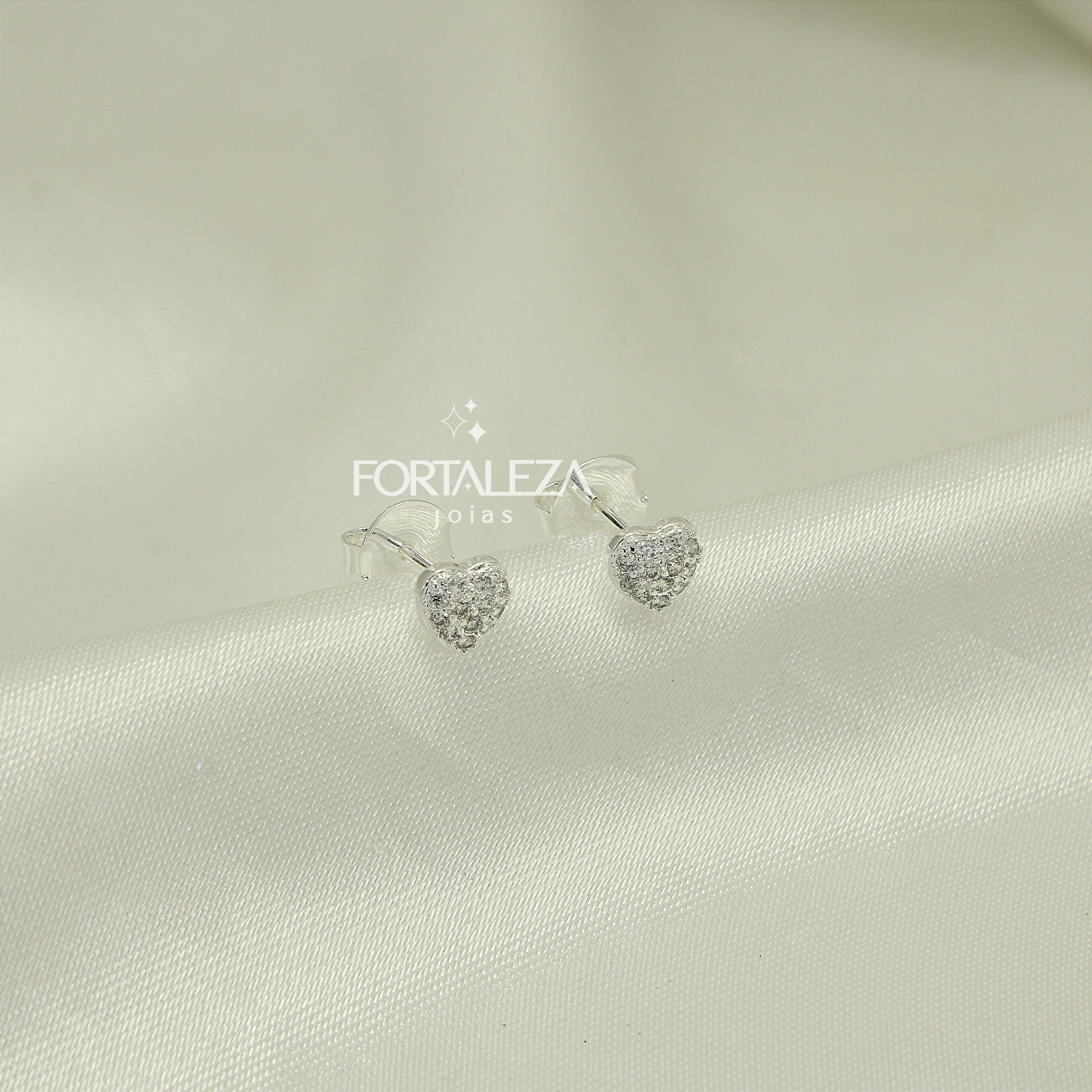 Brinco de Coração Cravejado em Zircônia Cristal Banhado a Prata 925