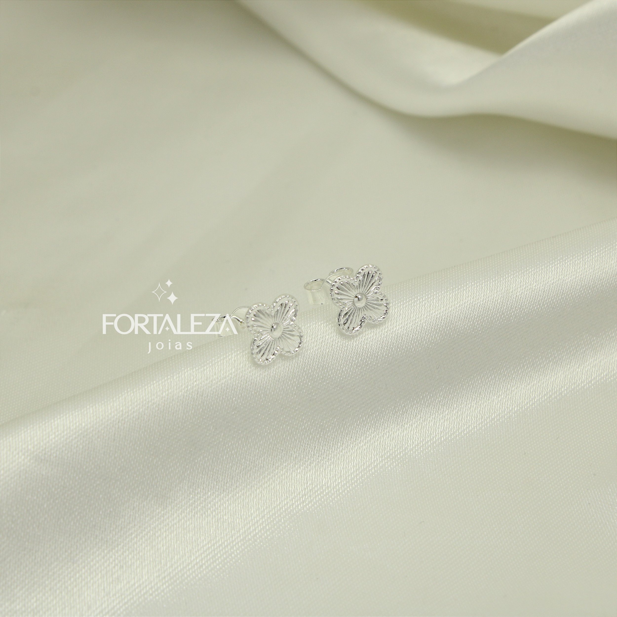 Brinco de Trevo Texturizado Banhado a Prata 925