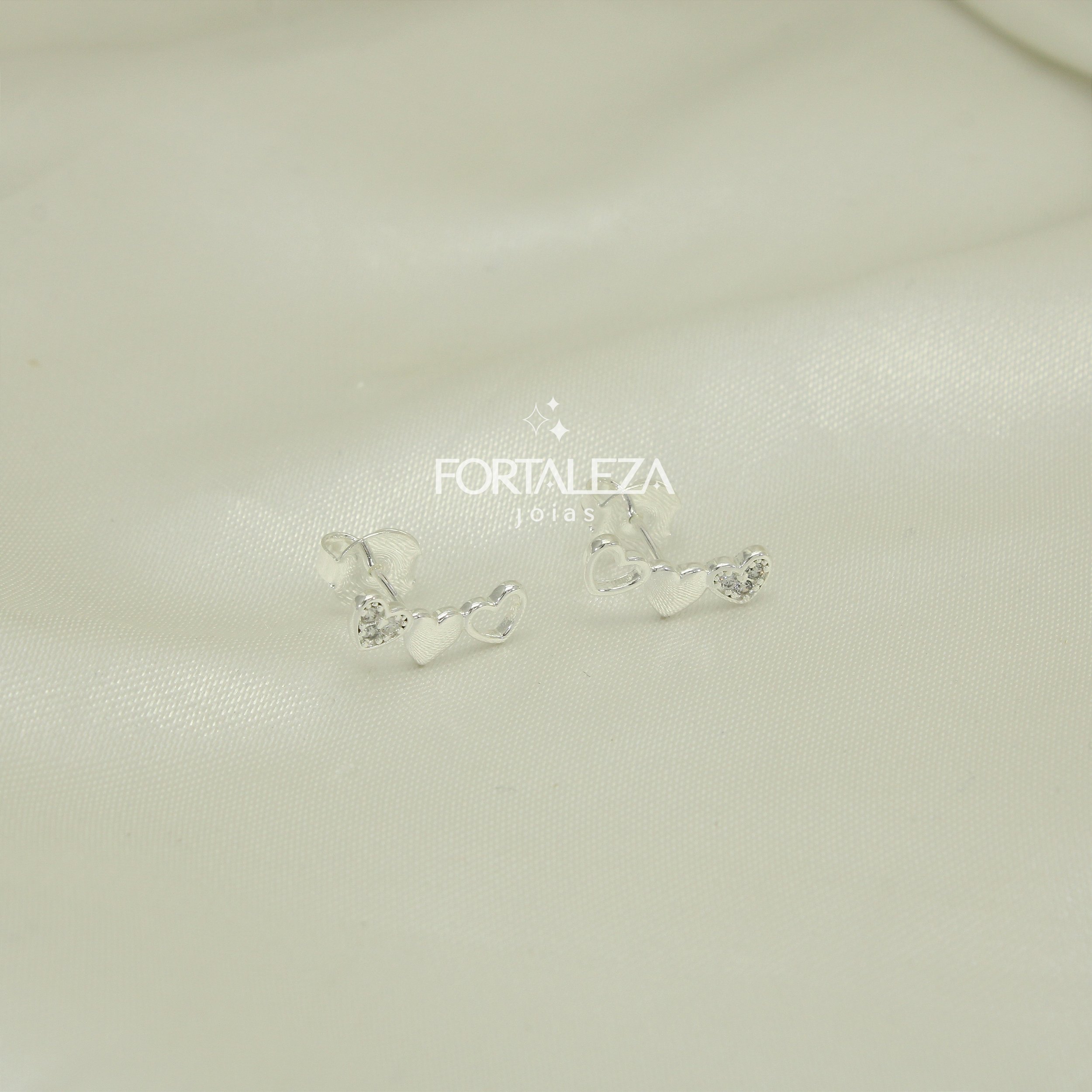 Brinco Mini Ear Cuff de Coração com Detalhe de Zircônia Cristal Banhado a Prata 925