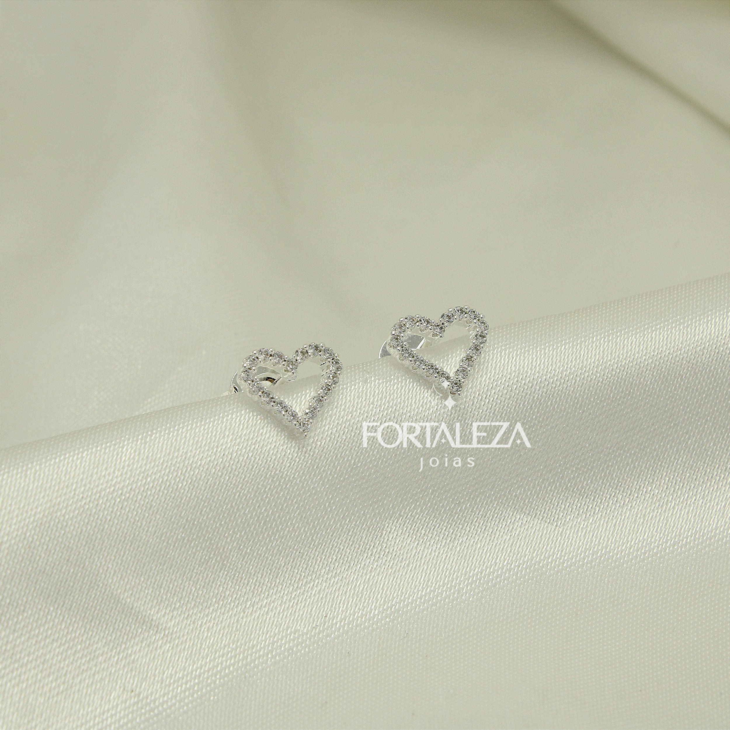 Brinco de Coração Vazado e Cravejado em Zircônia Cristal Banhado a Prata 925