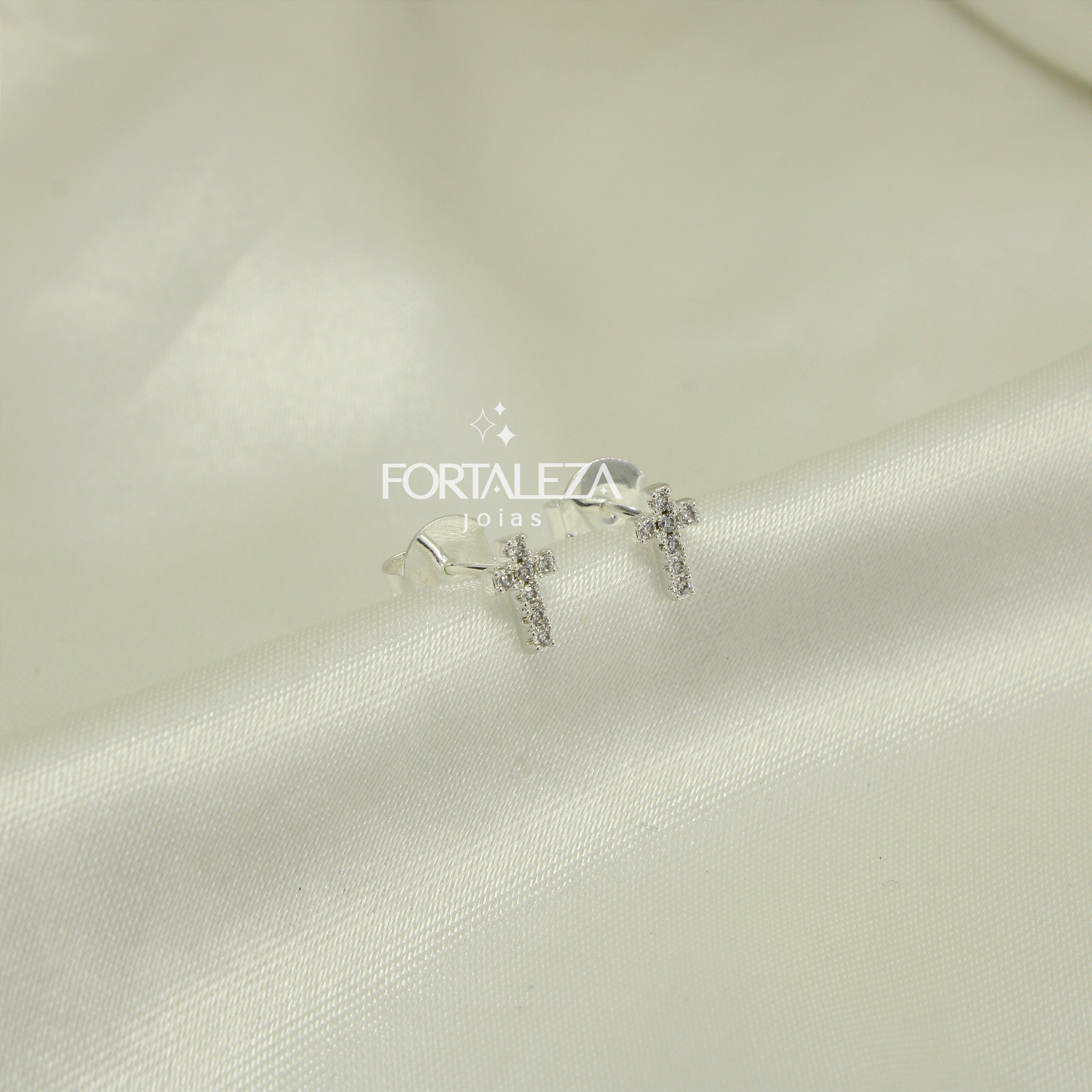 Brinco de Cruz Cravejada em Zircônia Cristal Banhado a Prata 925