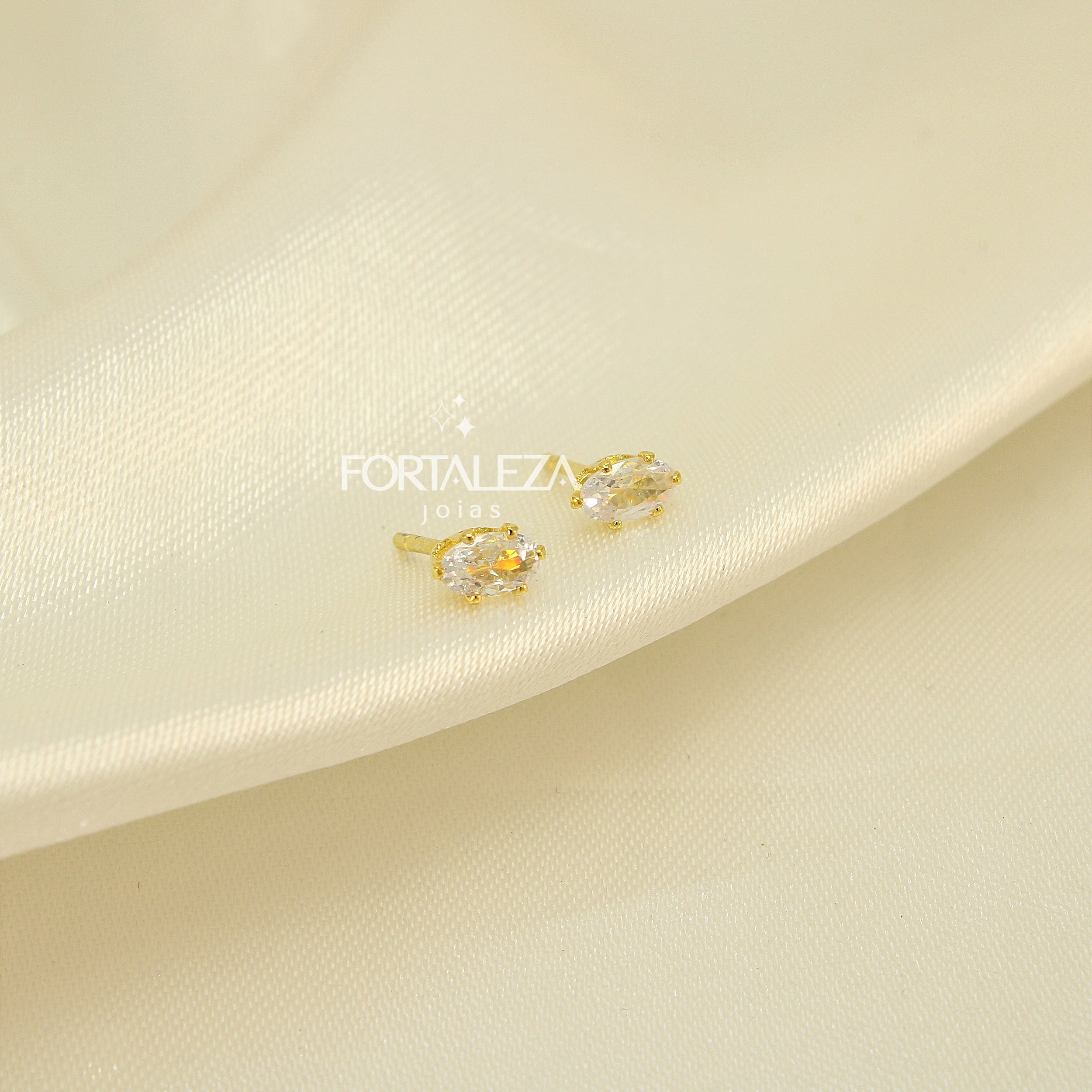 Brinco Ponto de Luz Oval com Zircônia Cristal Banhado a Ouro 18k