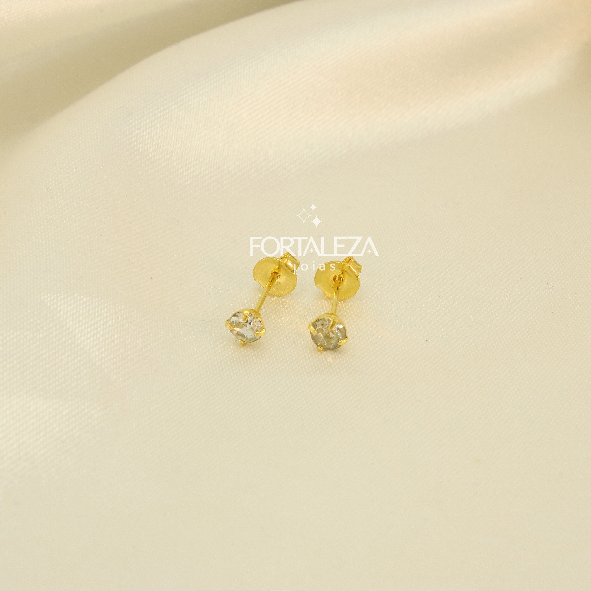 Brinco Ponto de Luz com Zircônia Cristal Banhado a Ouro 18k
