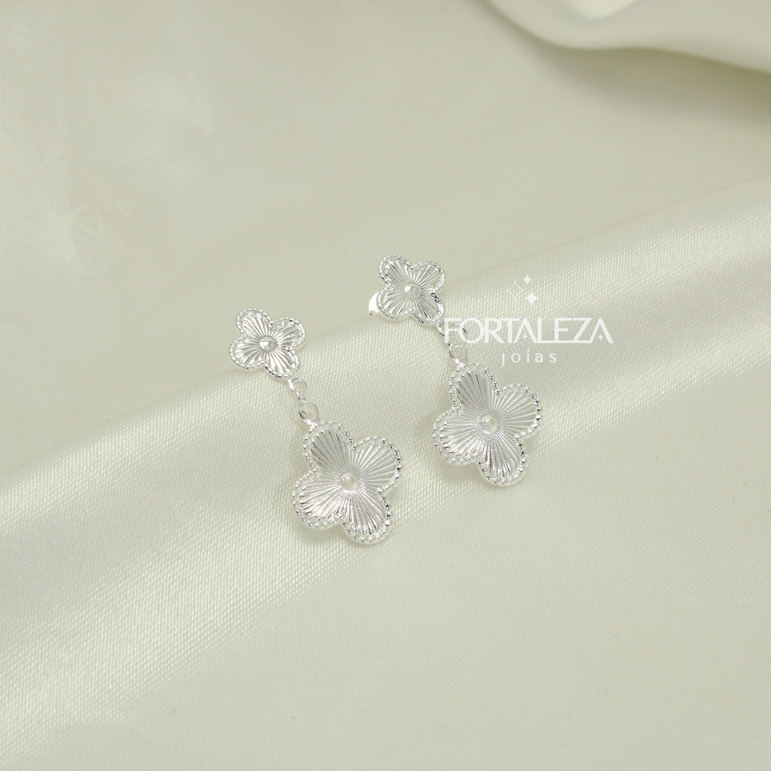 Brinco de Trevo Texturizado Banhado a Prata 925