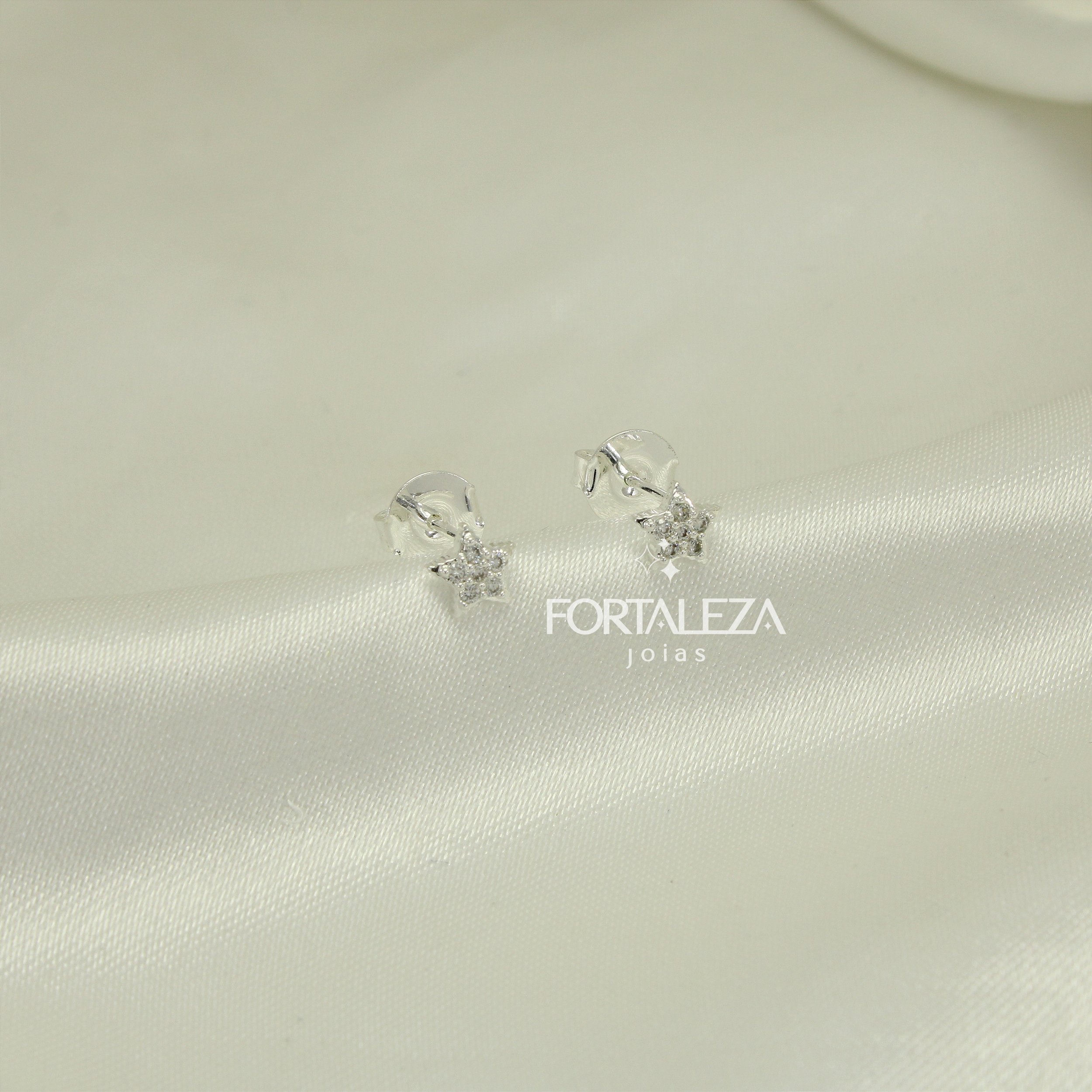 Brinco de Estrela Cravejado em Zircônia Cristal Banhado a Prata 925