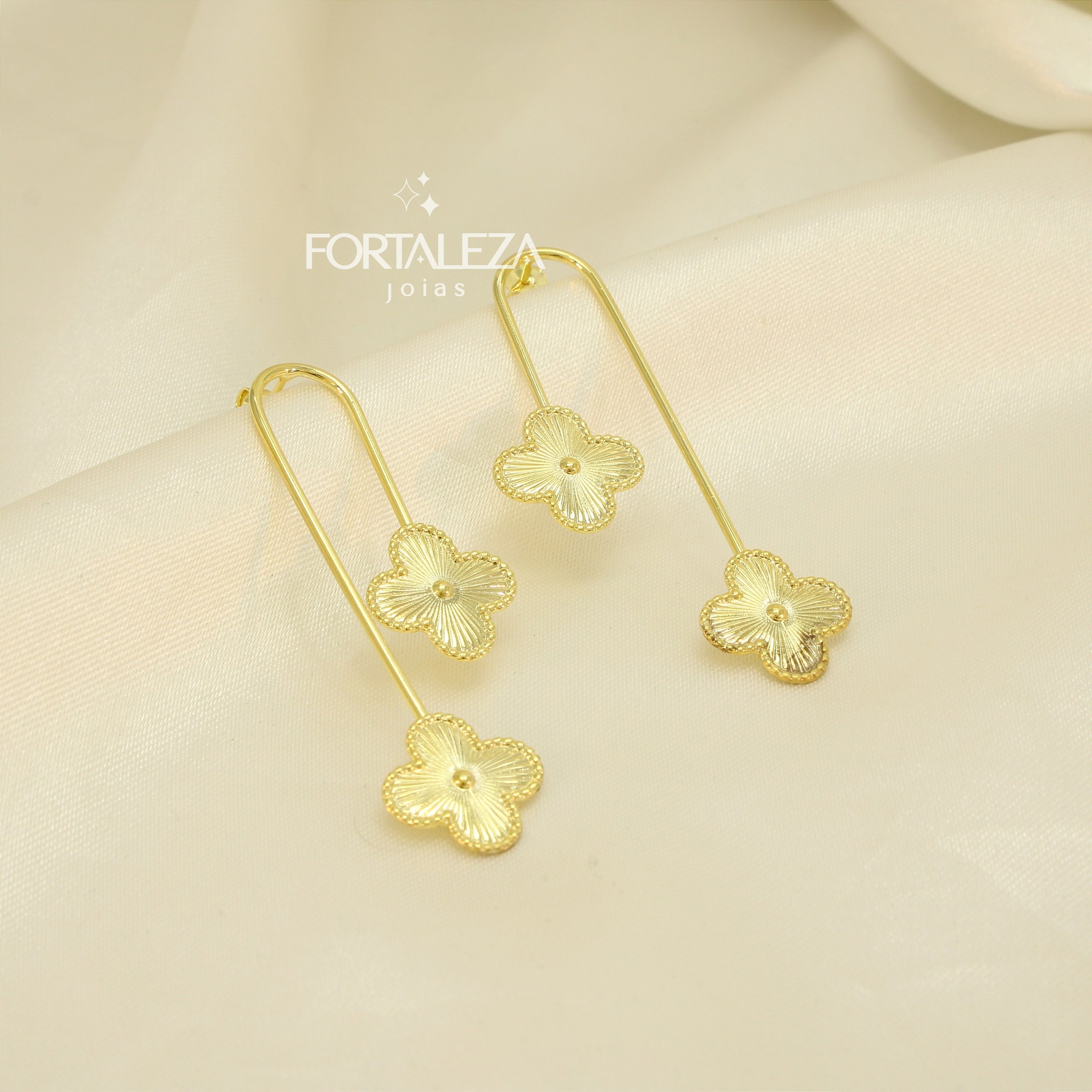 Brinco de Trevo em Cascata Banhado a Ouro 18k
