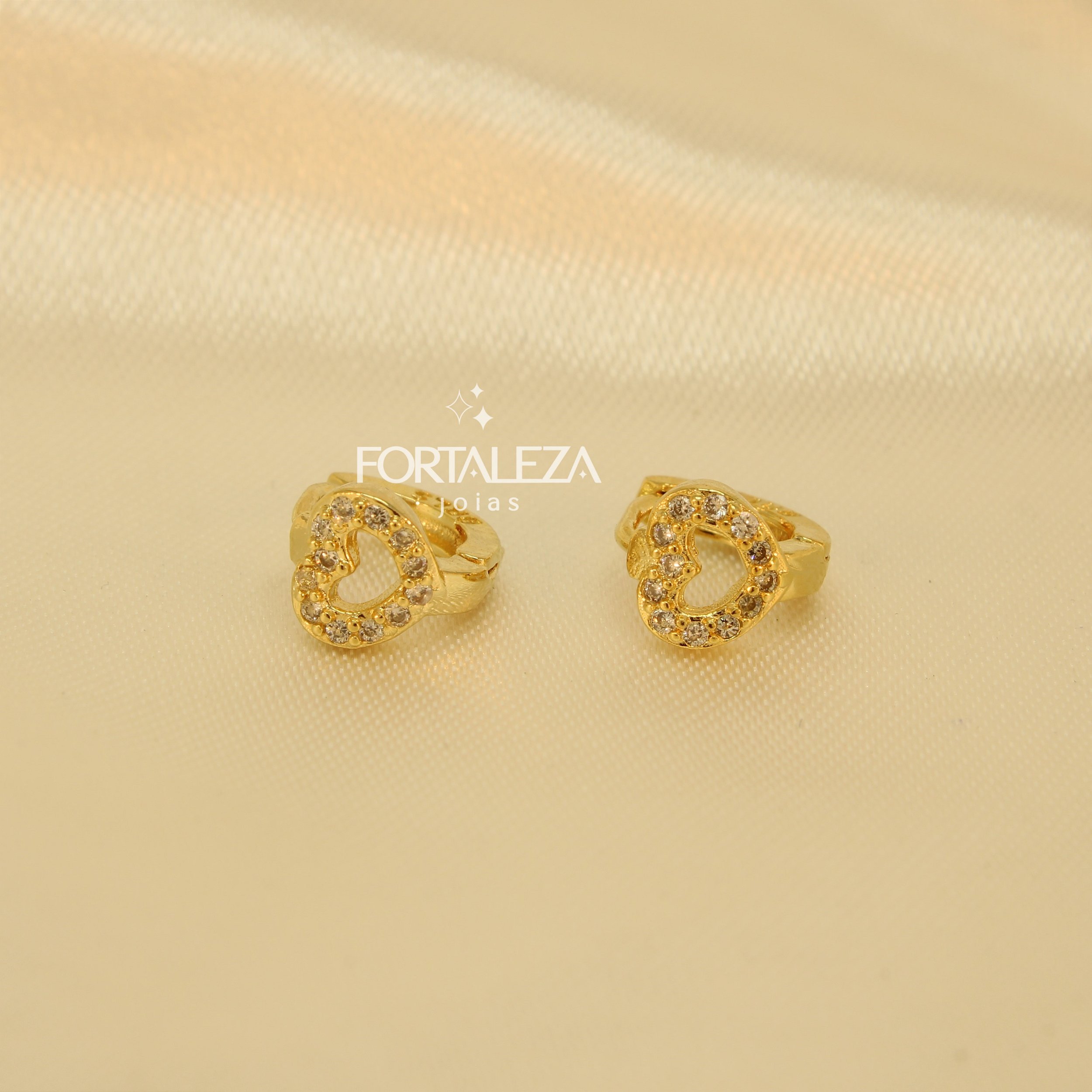 Brinco Argola de Coração Cravejado em Zircônia Cristal Banhado a Ouro 18k