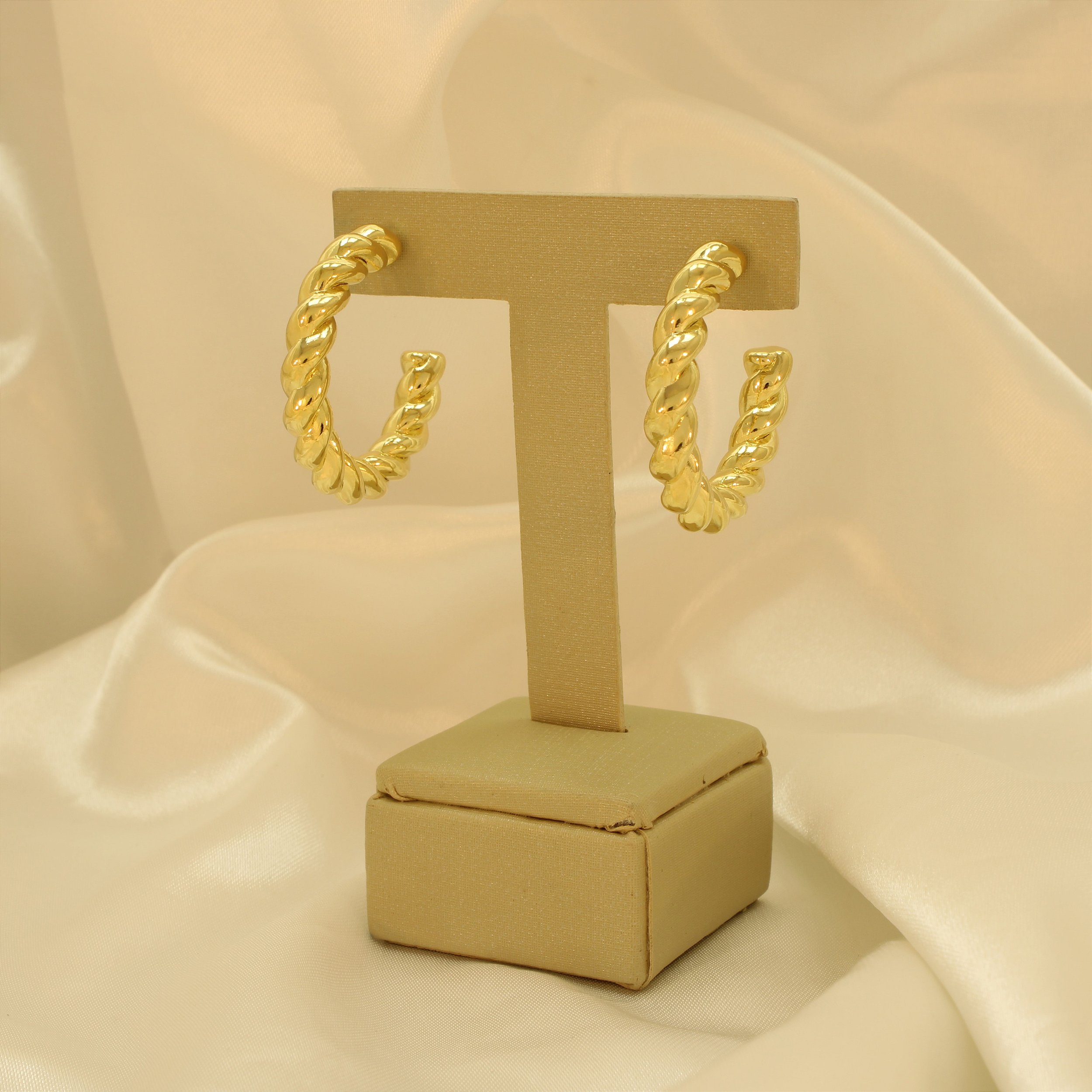 Brinco Argola Torcido com Design Eletroformação Folheado a Ouro 18k