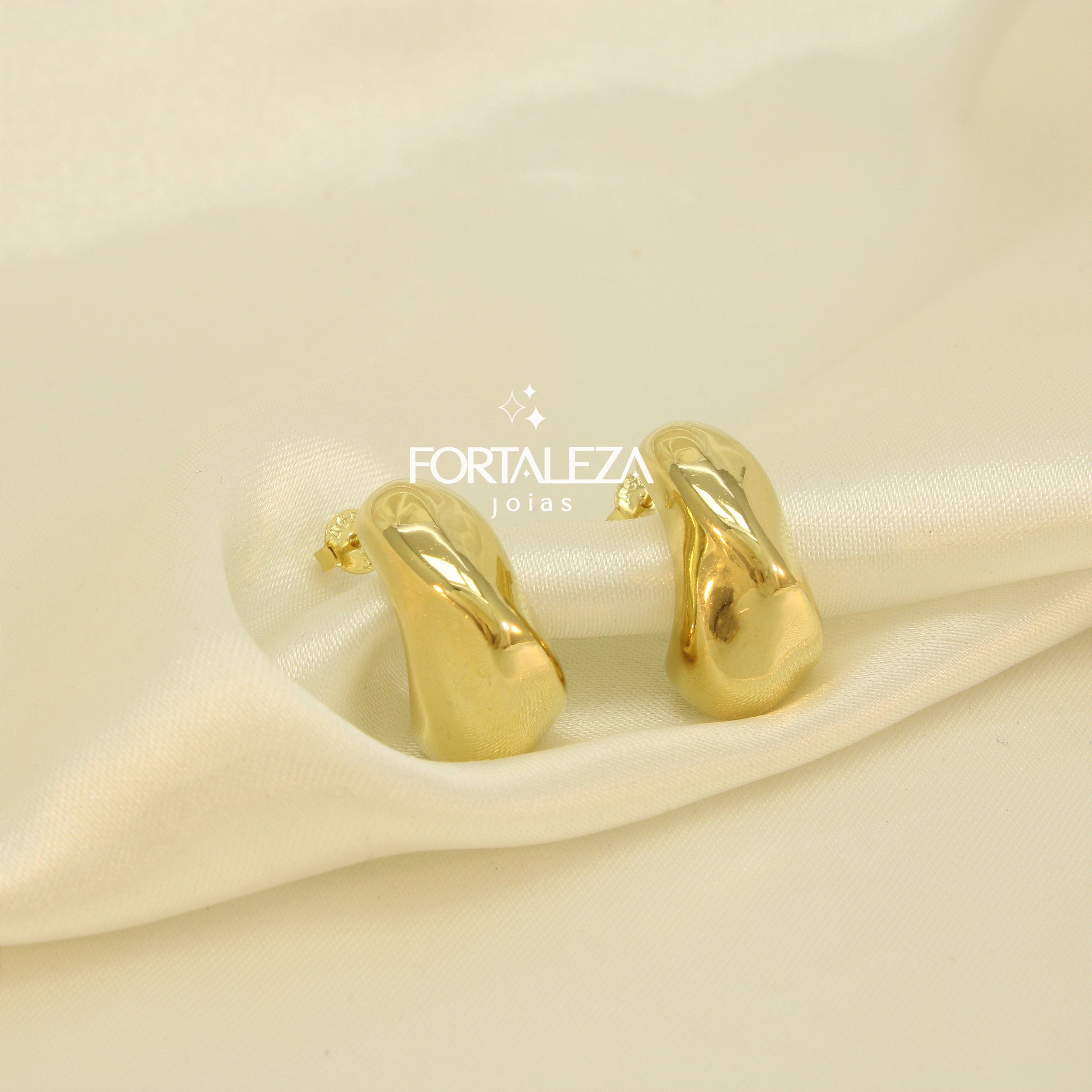 Brinco Meia Argola com Design Orgânico Banhado a Ouro 18k